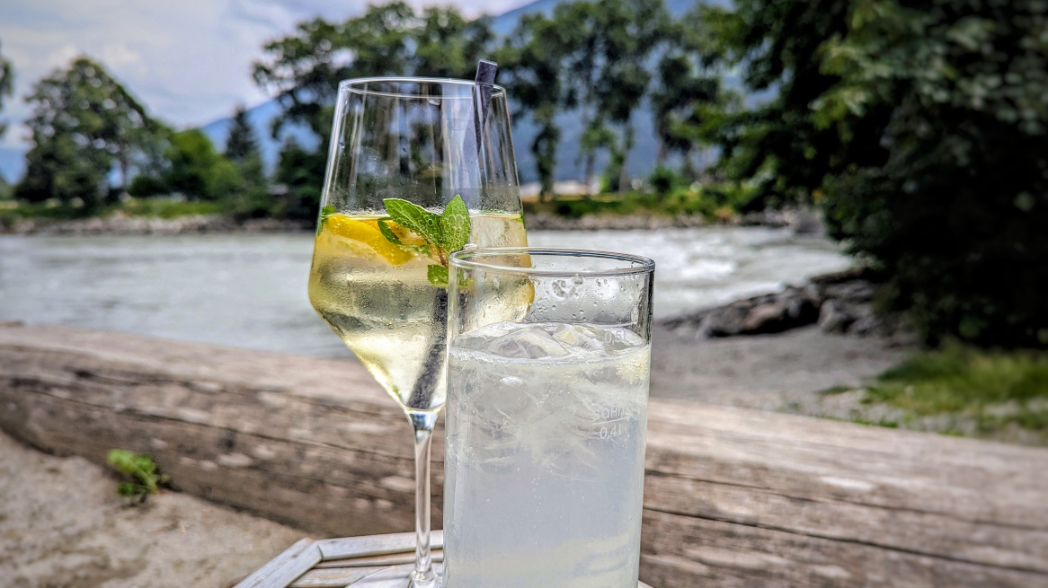 Ich traue mich kaum, es zuzugeben – aber wir sind tatsächlich mit dem Auto „angereist“. Dabei wäre Silz ganz unkompliziert mit dem Zug erreichbar gewesen, und der Spaziergang vom Bahnhof zum Lokal hätte uns sicher gutgetan. Außerdem führen tolle Rad- und Inlinerouten direkt durch Silz – das Crazy Eddy liegt also ideal für alle, die ihren Ausflug – anders als wir – aktiv gestalten möchten. Hier ist man genau richtig, wenn man sich nach ein bisschen körperlicher Ertüchtigung stärken will. Aber gut – wir haben’s uns zwar nicht „erarbeitet“, trotzdem haben Flammkuchen, Pommes, Limo und Spritzer herrlich geschmeckt. Übrigens: Wer mag, kann im Eddy auch frühstücken – mein Tipp: rechtzeitig reservieren! Und überhaupt: Wer auf der Suche nach einer familienfreundlichen, entspannten Location direkt am Innstrand ist – ganz ohne Schnickschnack, dafür mit ganz viel Charme – ab nach Silz ins Crazy Eddy!