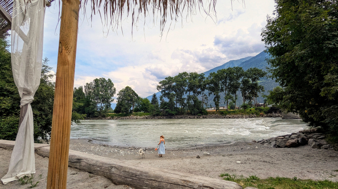 Für mich ganz persönlich ist der wichtigste Grund, warum ich das Crazy Eddy so toll finde: die Lage direkt am Innstrand! Gerade an heißen Tagen finde ich es – im wahrsten Sinn des Wortes – super cool, wenn man ganz nah am Wasser sein kann. Da zu unserer Familie ein sehr hitzeempfindlicher Hund gehört, der sich selbst für einen Husky hält, ist ein Lokal, in dem man direkt am Wasser entspannen kann und der Vierbeiner sich jederzeit abkühlen darf, einfach ideal. Aber was noch wichtiger ist: Auch für Kinder ist das Eddy ein echtes Paradies. Es gibt einen Beachvolleyballplatz, eine Rutsche, eine Sandkiste – und jede Menge Platz zum Herumtoben.