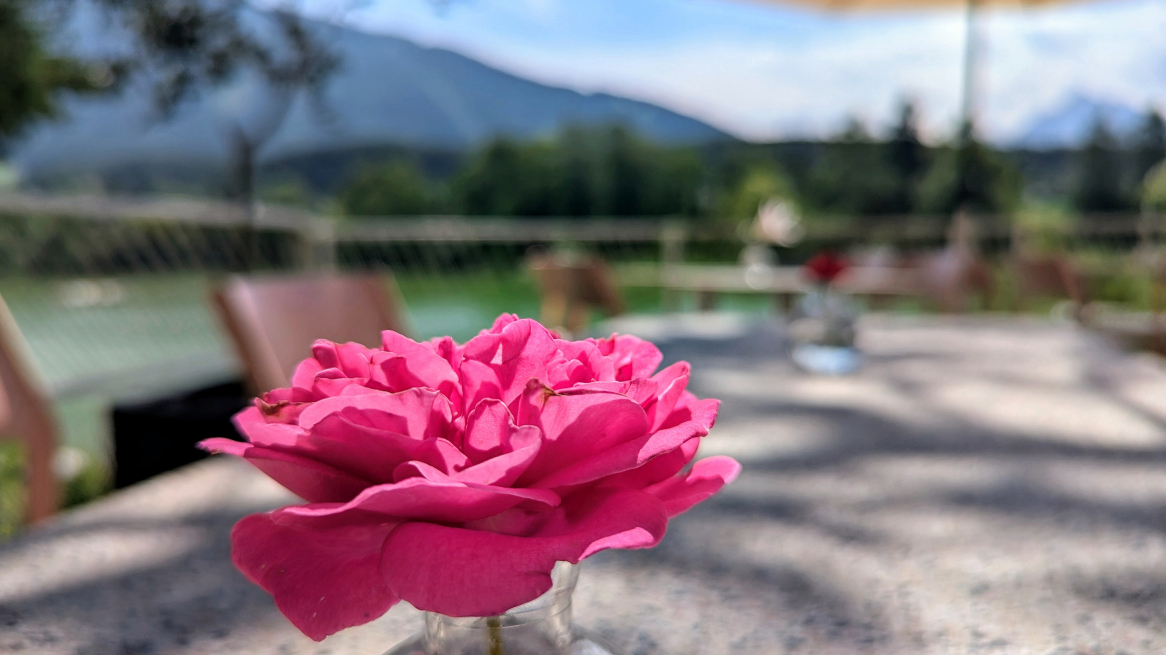 Von Silz geht’s weiter nach Lans. In dem charmanten Dorf südlich von Innsbruck liegt der bei Einheimischen wie Tourist:innen, bei Jung und Alt gleichermaßen beliebte Lansersee. Der Lansersee ist auf jeden Fall einen Besuch wert, und das zu jeder Jahreszeit. Familien empfehle ich besonders die Anreise mit der Erlebnis-Waldbahn, Linie 6 – das ist schon für sich ein kleines Abenteuer. Aber zurück zum Wesentlichen: dem Essen! Wer auf gehobene Küche Wert legt, wem Regionalität wichtig ist, wer gerne mit Blick aufs Wasser und die Berge speist – und wer japanische Fusionsküche mag – der sollte unbedingt in die Koi Bar einkehren.