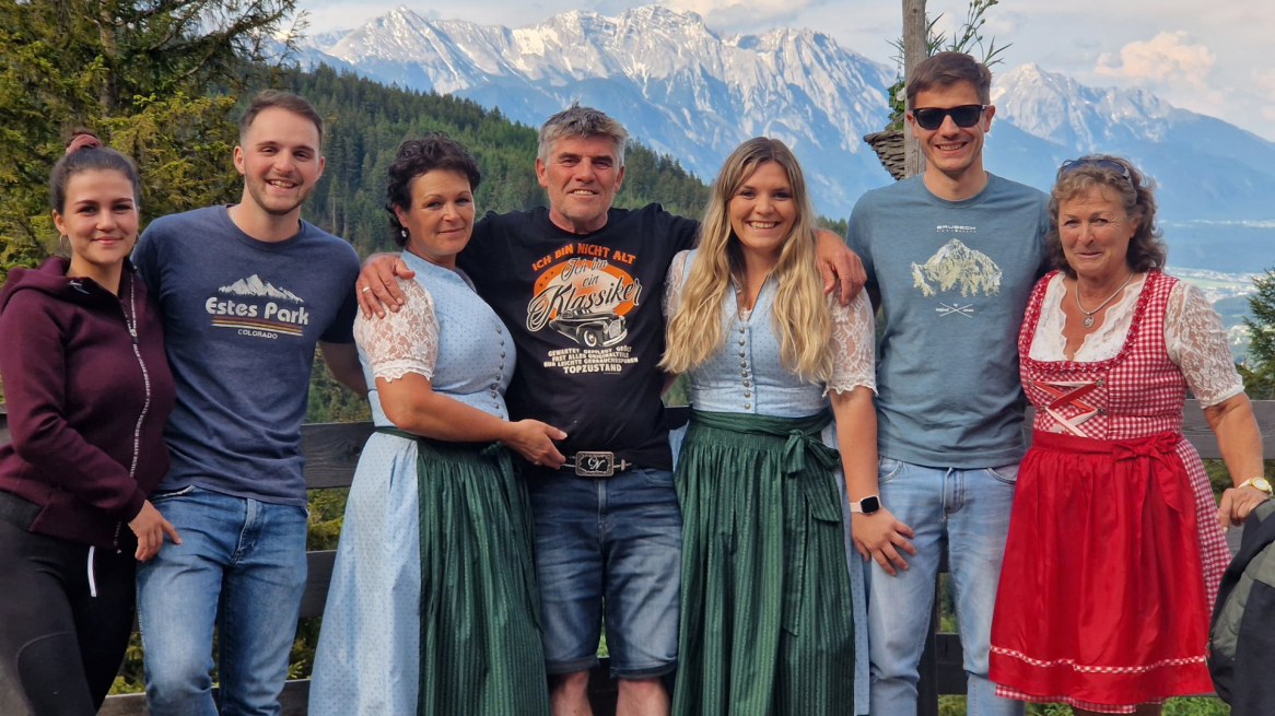 Kreither Alm in Mutters mit Blick auf die Nordkette über Innsbruck bis ins Tiroler Unterland.