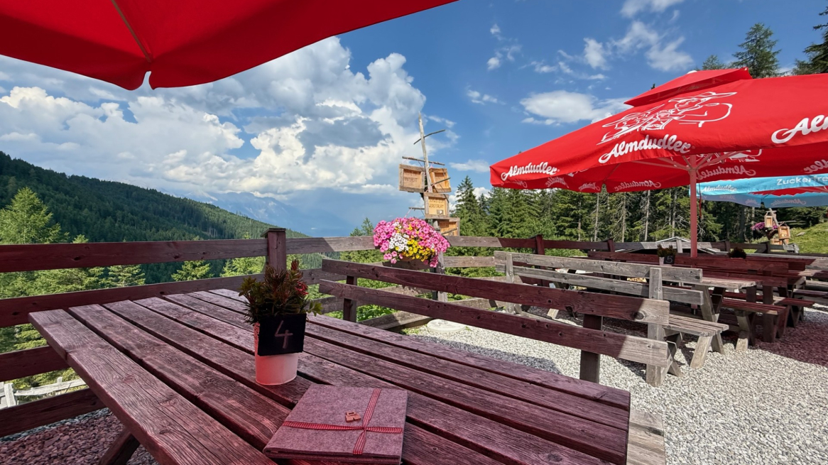 In der Zwischenzeit bereitet Kathrin die Terrasse und die Gaststube vor. Bei kühleren Temperaturen muss diese eingeheizt werden. Bei Sonnenschein ist es draußen auch bei heißen Temperaturen sehr angenehm und die Terrasse lädt zum Verweilen ein.