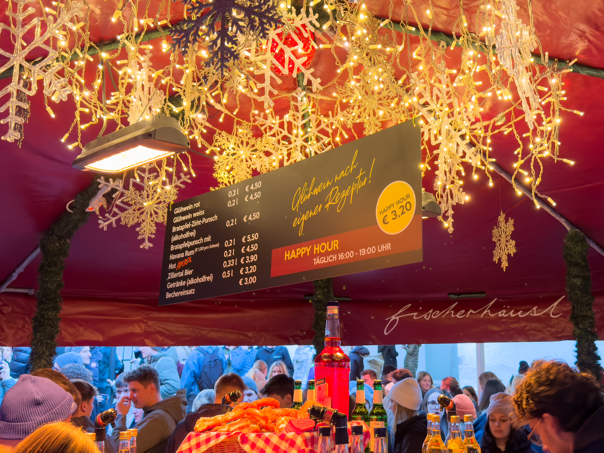 Als kleiner Bub half der Benedikt hier schon aus, seit vier Saisonen macht er selbst den Chef. Was sich in gut 30 Jahren verändert hat? „Der Hot Aperol hat den Orangenpusch inzwischen abgelöst, auch das Feierabendbier (Zillertal Pils) bleibt neben den Heißgetränken überraschend beliebt“, lacht der Benedikt, „dafür ist unser Glühwein-Geheimnis immer noch das Gleiche.“ Grundsätzlich gilt übrigens „Afterworkstatt Aprés-Ski“, weswegen das Fischerhäusl einfach komplett auf Hochprozentiges verzichtet (einzige Ausnahme: Bratapfel-Punsch mit Schuss). Sieben Tage die Woche sorgen stattdessen echte Weihnachtsklassiker für Stimmung – doch selbst die Playlist (hier zum Streamen) wurde so weit entschärft, dass „Last Christmas“ wirklich erst ganz zum Schluss gesungen wird, verspricht der Benedikt.