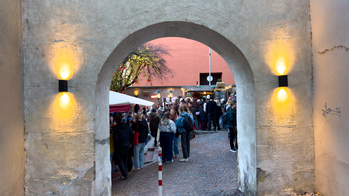 Hier, in der Herrengasse neben dem Dom, hat man das Glühwein-Glück schon gefunden.