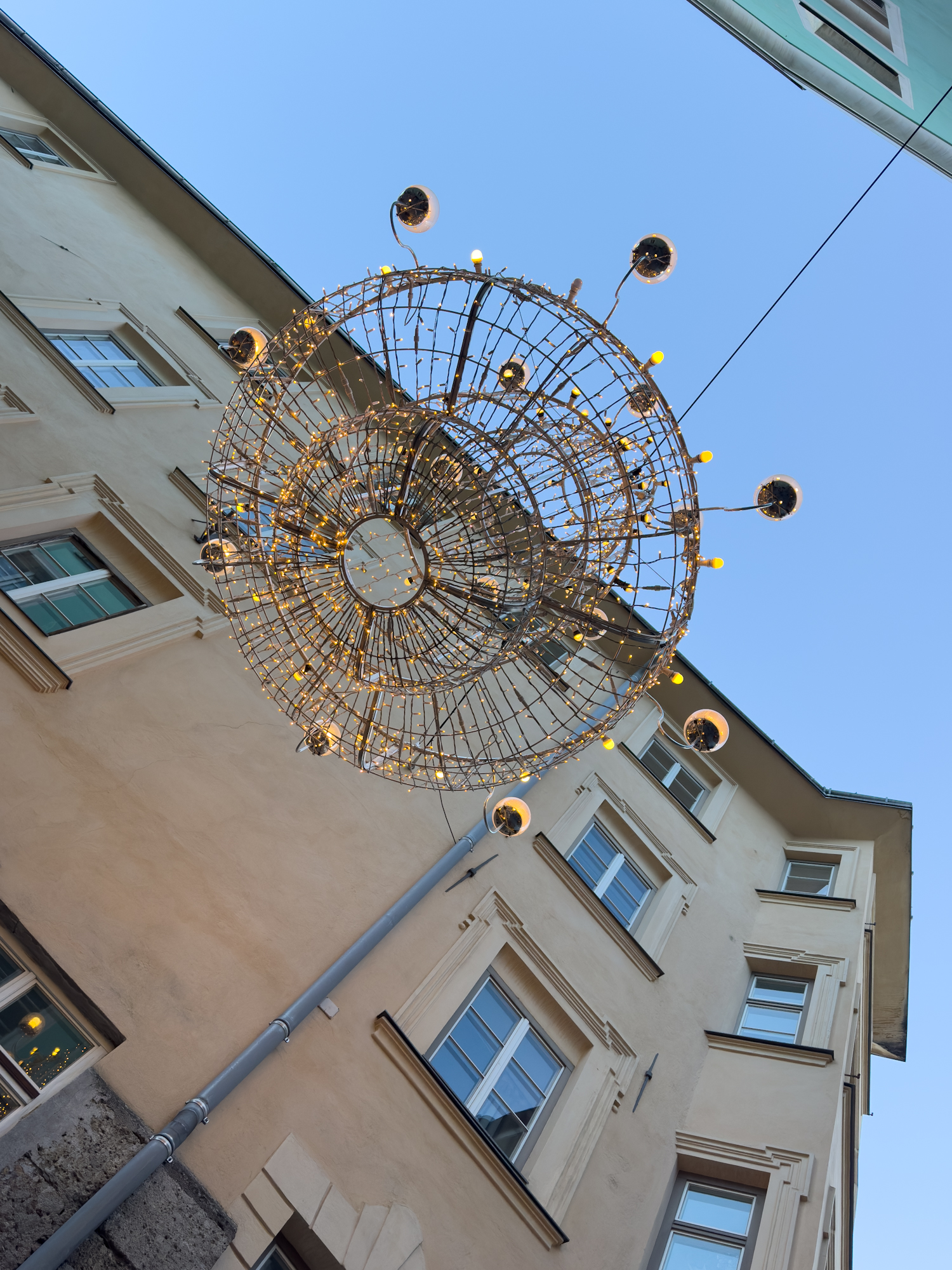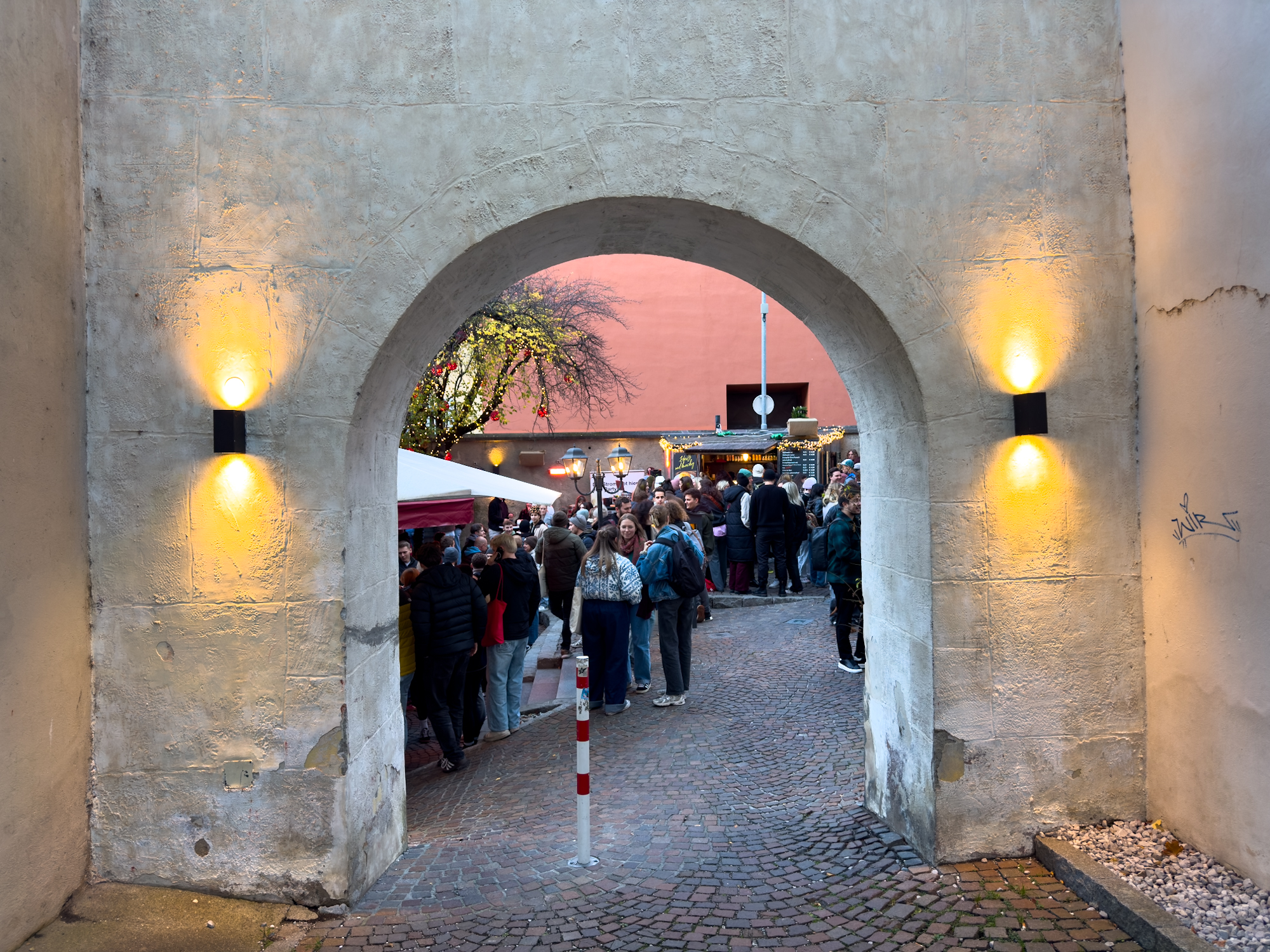 Vorm Goldenen Dachl rechts, unterm Kronleuchter links zum Dom und dann den Glühwein-Düften folgen.