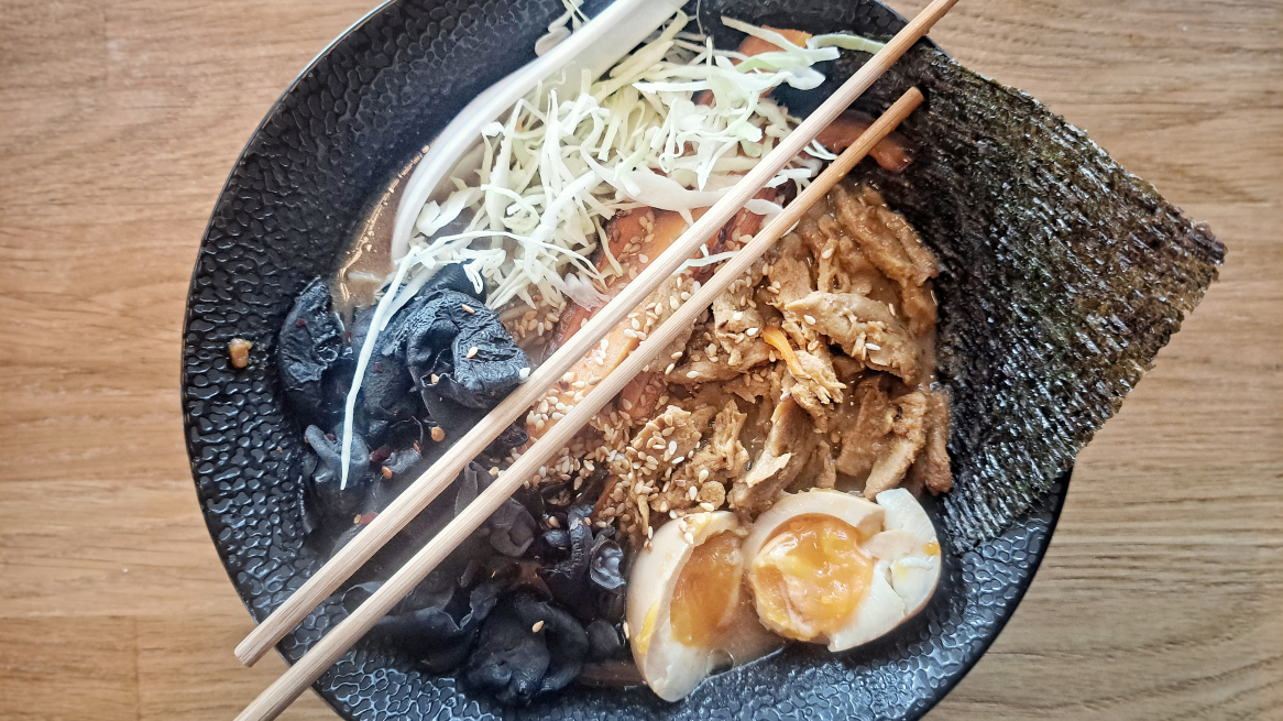 Die japanische Nudelsuppe hat ihre Wurzeln im Kaiserreich China und wurde im 19. Jahrhundert von der japanischen Küche übernommen, angepasst und weiterentwickelt. Da ich gerne asiatisch esse, war ich mir sicher, dass mir auch Ramen schmecken würden. Und siehe da, ich wurde nicht enttäuscht. Eins vorweg – um wirklich ehrlich zu sein – mit Kindern würde ich nicht herkommen. Die Gerichte sind gut gewürzt, für kleine Gaumen wahrscheinlich etwas zu sehr. Mein Mann war ebenfalls nicht vollends zufrieden; ihm war es zu wenig: zu wenig Fleisch, zu wenig Fett, zu wenig deftig. Ich hingegen fand es wirklich gut.