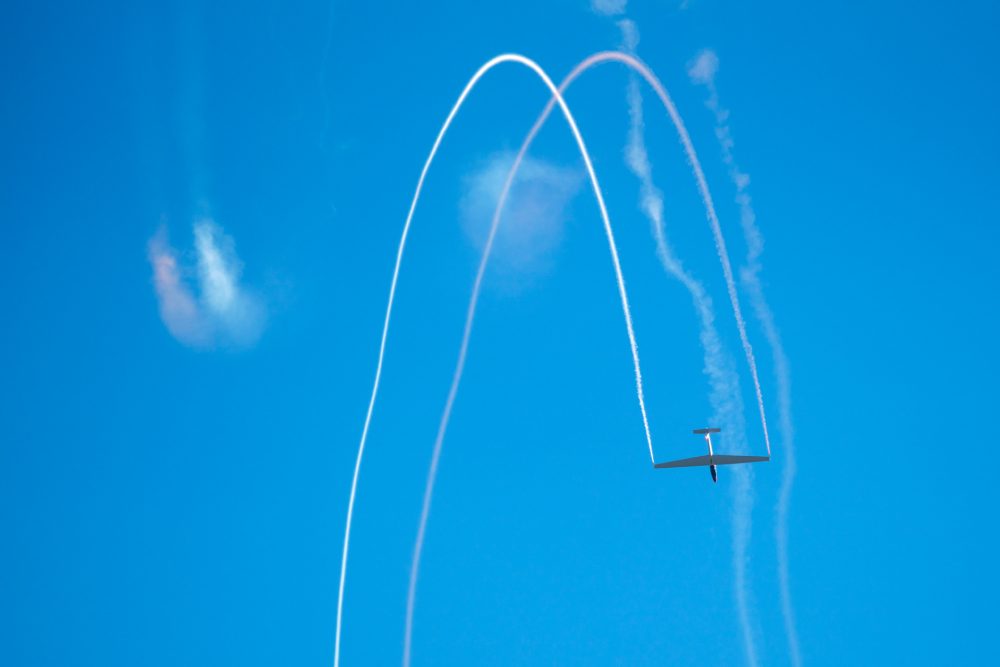 Neben der Vorführung der Flying Bulls gab es auch mehrmals am Tag eine Akrobatikschow eines Segelfliegers. Beeindruckende Figuren wurden mit dem Robbe MDM-1 Fox und gänzlich ohne motorische Unterstützung in den Himmel gezaubert. Absolut sehenswert!