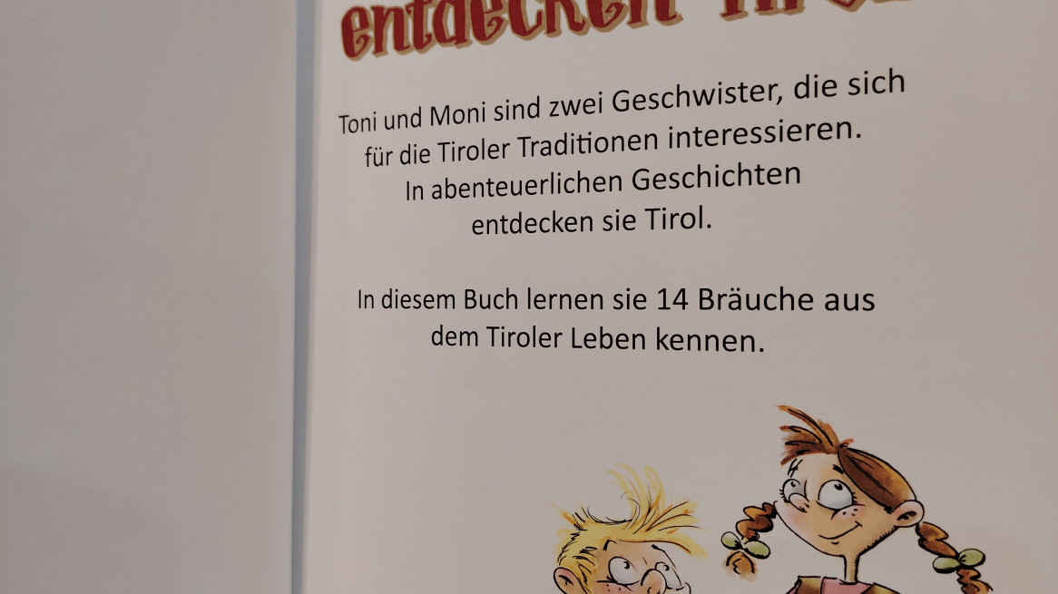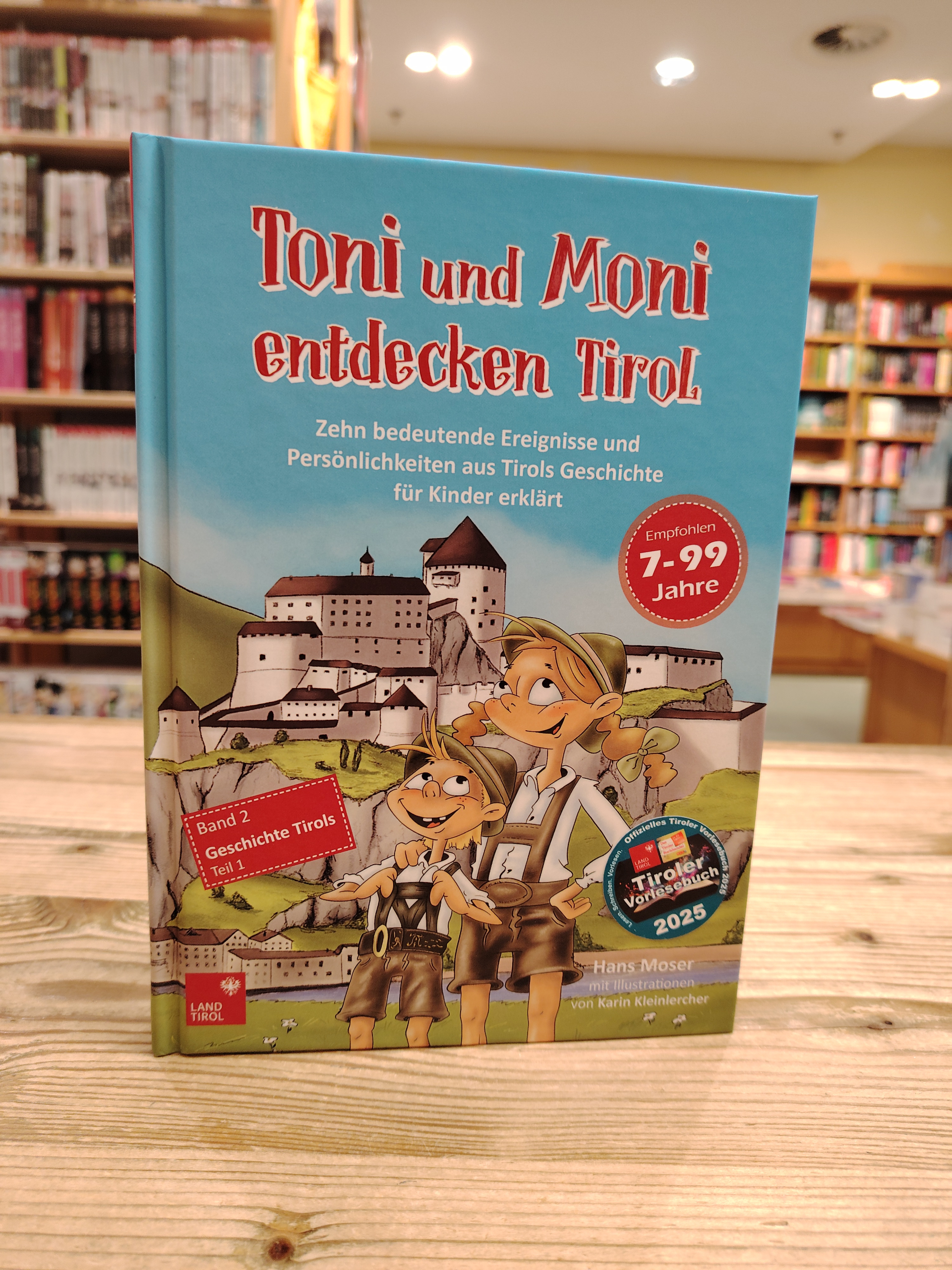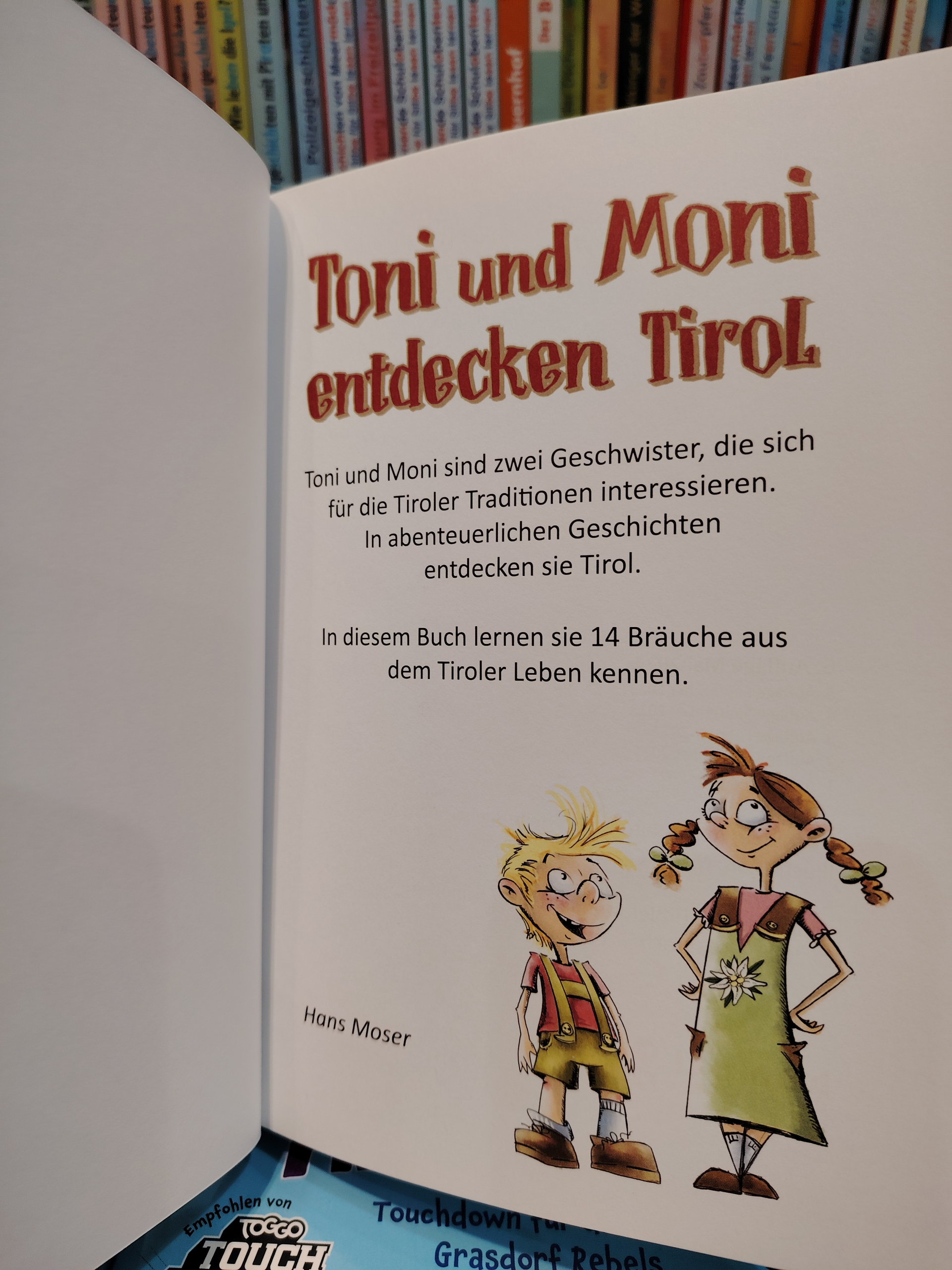 Gemeinsam mit Toni und Moni können Kinder in den Buchrreihe „Toni und Moni entdecken Tirol“ von Hans Moser Tirol entdecken. Toni und Moni sind Geschwister und interessieren sich für Tradition und Geschichte. In Band 1 lernen sie 14 Bräuche aus dem Tiroler Leben kennen. In Band 2 begeben sie sich auf die Spuren berühmter Tiroler wie Kaiser Max, Margarethe Maultasch, Andreas Hofer & Co – beim Lesen erfährt man so einiges über das Brauchtum, bedeutende Ereignisse und Persönlichkeiten. Es ist einfach und kindgerecht beschrieben, aber nicht nur die Kids profitieren davon, sondern auch wir Erwachsenen.