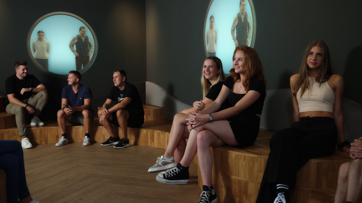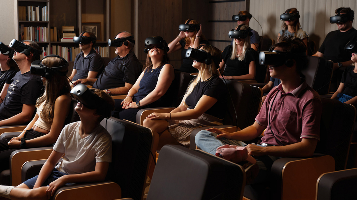 Doch technisch kommt auf die Besucher:innen noch einiges zu: Im zweiten Raum der Experience Tirol sitzt man wie in einem Kino und erhält Virtual-Reality-Brillen. Für mich ist es eine Premiere, eine VR-Brille zu tragen. Die Mitarbeiter:innen helfen freundlich beim richtigen Anlegen der Geräte. Das funktioniert übrigens auch für Brillenträger:innen wie mich. Für ein optimales und scharf eingestelltes Bild ist es wichtig, die Brille richtig zu tragen. Die VR-Brille soll möglichst eng anliegen, wird empfohlen.