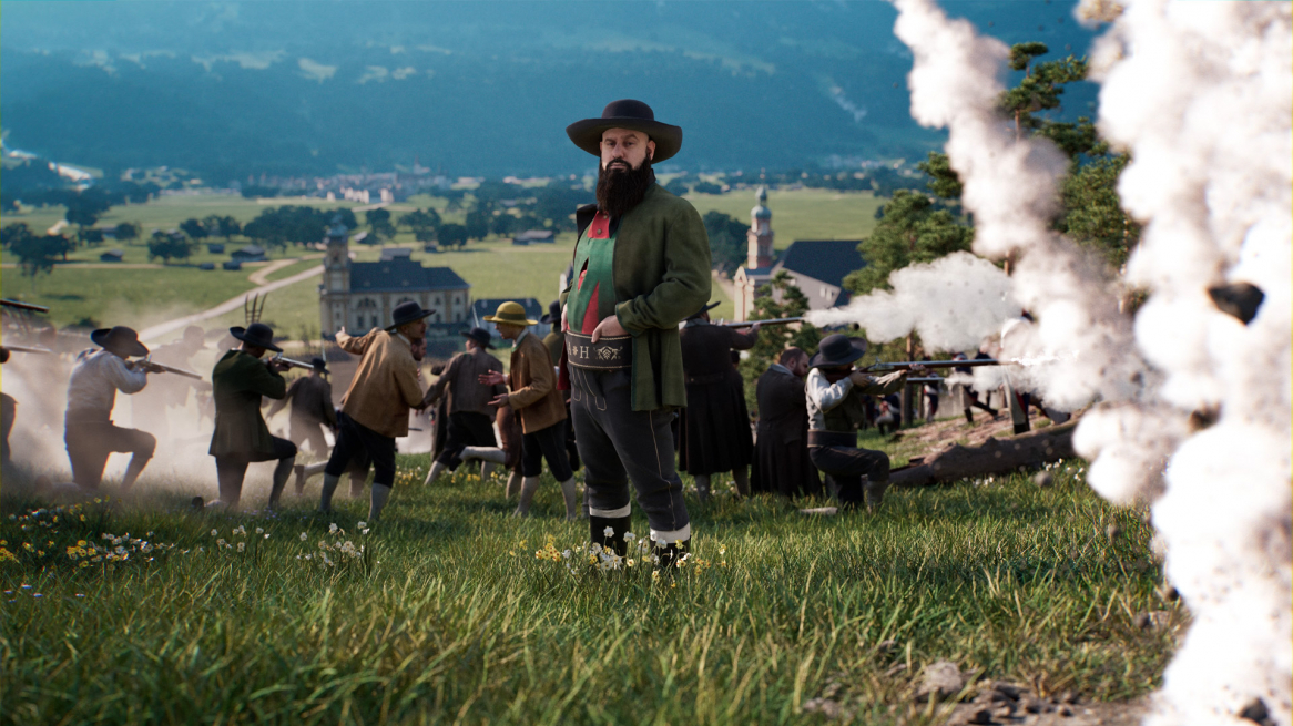 Nun geht’s auf eine Reise durch die Geschichte Tirols. Die VR-Technik macht dies zu einem besonderen Erlebnis. Blickt man zur Seite, nach oben oder nach unten, ergibt sich ein breites, mehrdimensionales Sichtfeld. Die Tour führt auf einen Gletscher zu Ötzi, bei einer Kutschfahrt durch das mittelalterliche Innsbruck sitzt man neben niemand Geringerem als Kaiser Maximilian I., und weiter schwebt man über die Schlachtfelder der Tiroler Freiheitskämpfe im Jahr 1809. Zusätzlich zu diesen sehr klassischen Tirol-Themen werden auch schwierigere Punkte wie die Brennergrenze, der Transit und der Tourismus angesprochen.