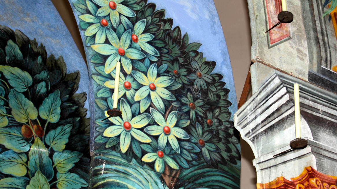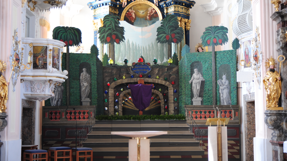 Die Tradition der Ostergräber reicht bis ins frühe Mittelalter zurück. Schon damals stellten Gläubige in Europa Nachbildungen heiliger Stätten dar, insbesondere des Grabes Christi. Die ersten Heiligen Gräber in Kirchen waren schlichte Holztruhen. Doch im Laufe der Zeit wurden sie immer kunstvoller: Ab Mitte des 16. Jahrhunderts entwickelten sich die Ostergräber zu prächtigen Inszenierungen. Inspiriert von den Trauergerüsten, wie man sie von Kaisern und Fürsten kannte, arrangierte man mehrere Kulissenbögen hintereinander. Für eine stimmungsvolle Beleuchtung sorgten sogenannte Schusterkugeln – mit Wasser gefüllte Glaskugeln, die das Kerzenlicht verstärkten.
