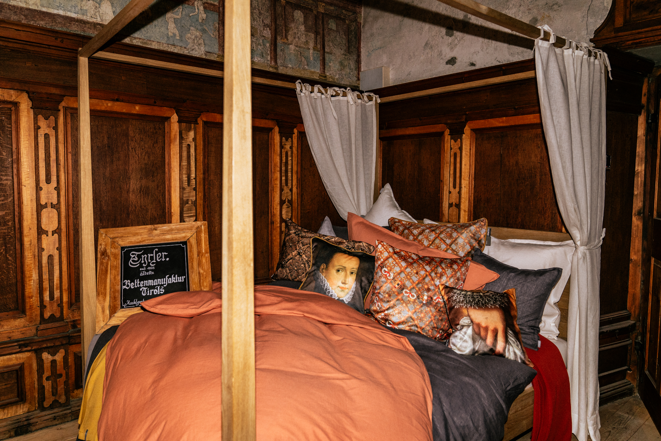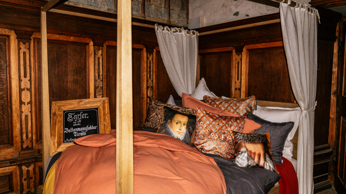 Im Rahmen der „Wellness à la Philippine Welser“-Themenführung hat sich das Schloss Ambras Innsbruck mit herausragenden, regionalen Partnern zusammengetan. Schlafen wie Philippine Welser - das kann man in der eigens entwickelten Kollektion der Firma Tyrler 1825. Neben wunderschönen Kissen mit Philippines Portrait und Originalmotiven aus dem Schloss umfasst die Kollektion auch Badehandtücher und Bio-Badeseife aus Oliven- und Lorbeeröl.