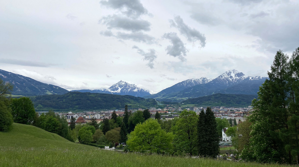 Vom Friedhof aus eröffnet sich ein fantastischer Blick auf Innsbruck, das Mittelgebirge und das Wipptal.