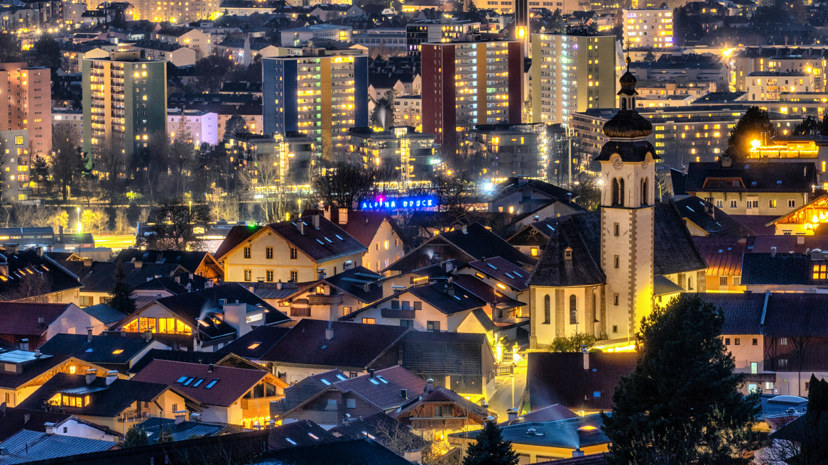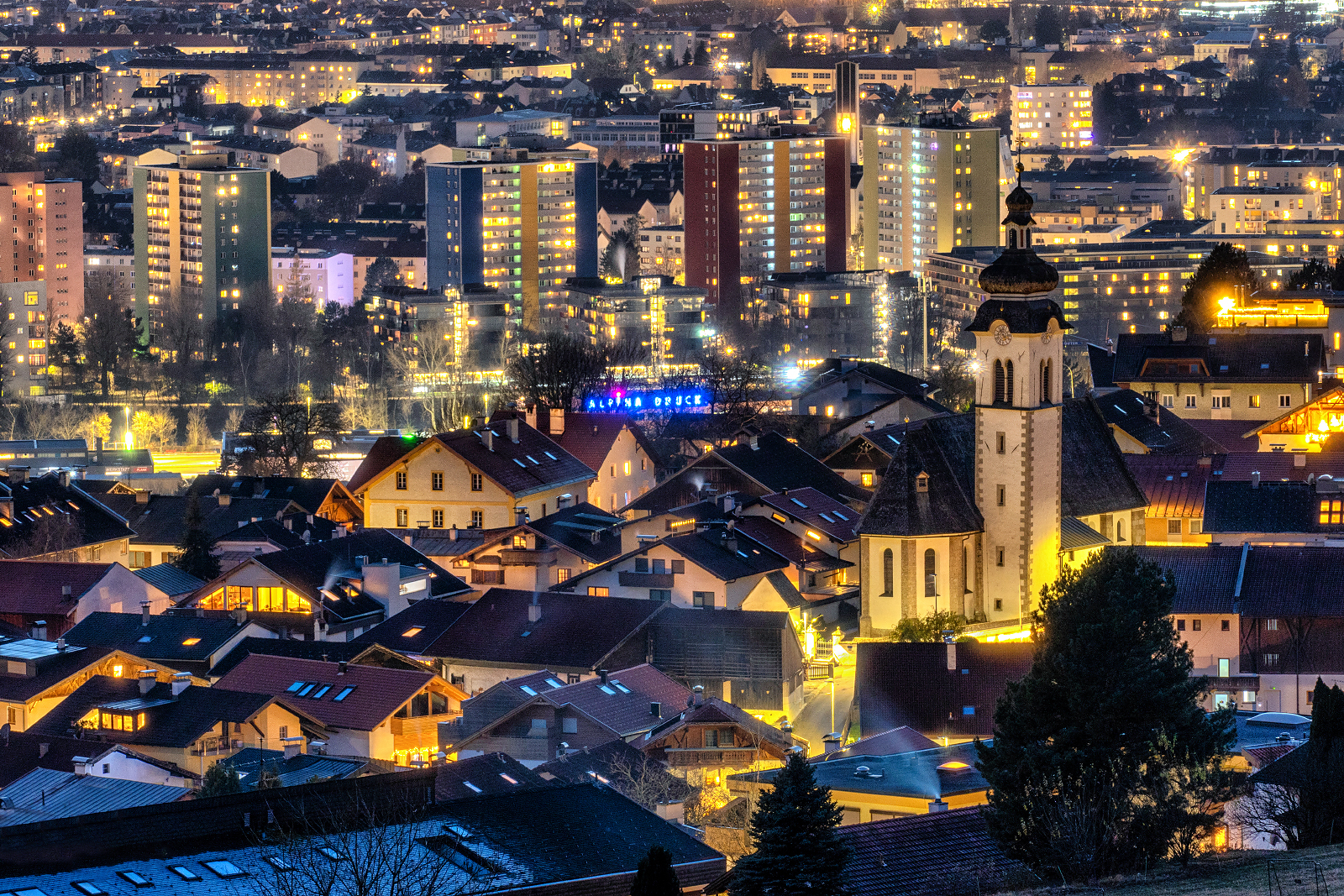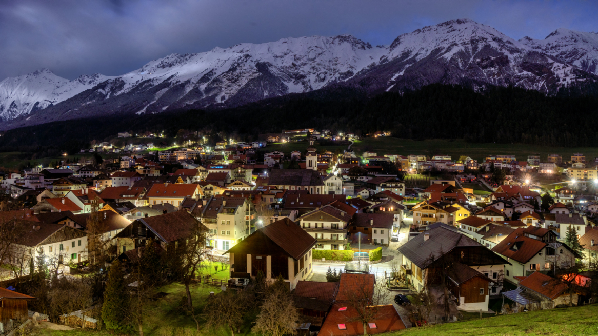 Dörfliches Arzl mit dem urbanen Innsbruck dahinter
