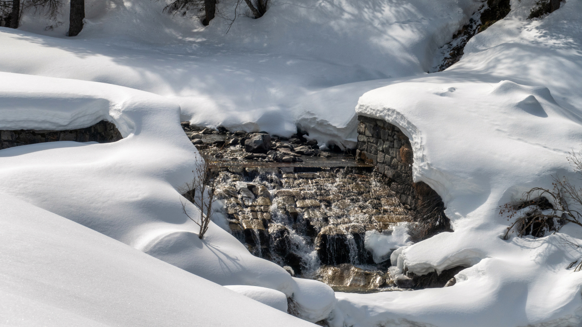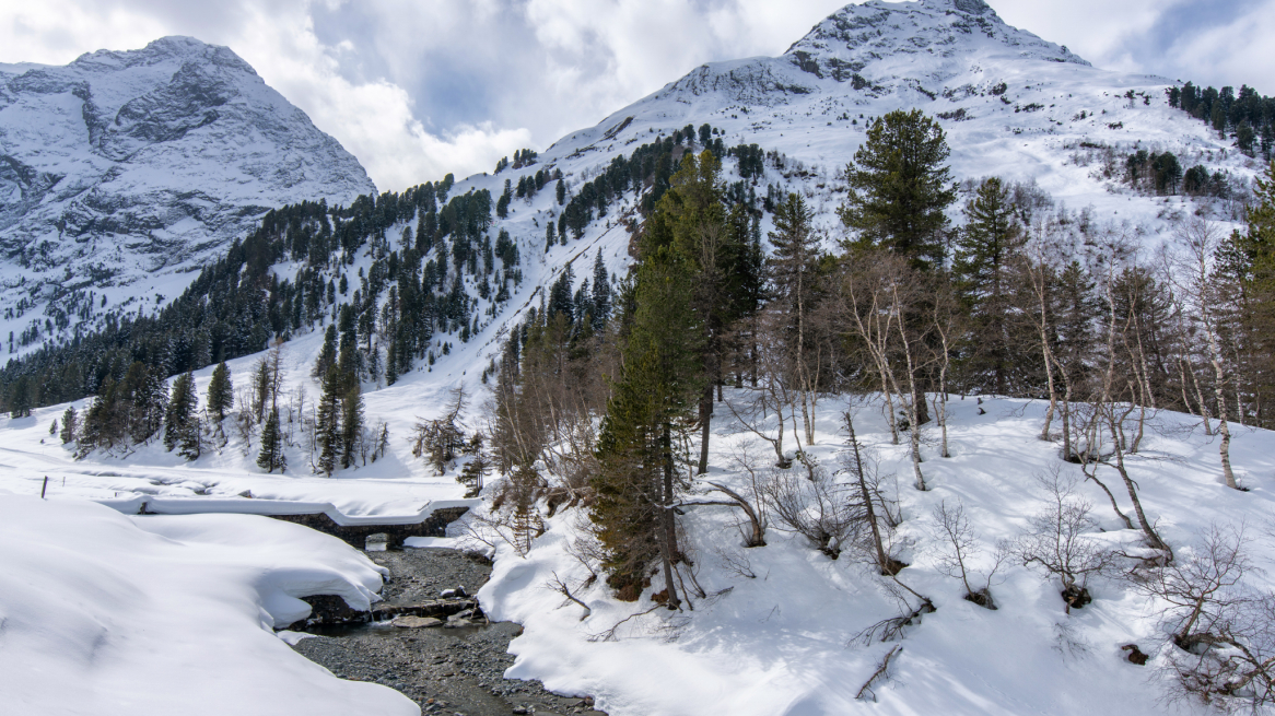 Der Winterwanderweg führt direkt vom Parkplatz Richtung Talschluss und ist gut beschildert. Der bestens präparierte Weg dient auch gleichzeitig als Skatingspur für die Loipe, ist jedoch sehr breit und somit ist Platz für Wanderer wie auch Langläufer. Die ersten Meter geht es bergauf bis auf eine Kuppe, von der man eine schöne Sicht auf den Alpengasthof und das Tal hat. Danach geht es praktisch eben weiter bis zum Ziel. Der durch unberührte Schneelandschaften fließende Bach sorgt für eine angenehme Geräuschkulisse.