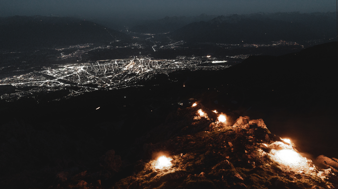 Unser Tag startet früh in Innsbruck, an der Talstation der Nordkettenbahn. Von dort geht es mit atemberaubenden Ausblick hoch, den Gipfeln der Nordkette entgegen. Wir treffen uns zuerst mit Siegfried Ploner, der seit 60 Jahren aktiv an den Bergfeuern beteiligt ist. Siegfried ist Teil des Vereins Sonnwendring, der es sich zur Aufgabe gemacht hat in Zusammenarbeit mit anderen Vereinen, Privatpersonen, der Stadt Innsbruck und den Nordkettenbahnen die Sonnwendfeuer im Raum Innsbruck zu koordinieren. Als Organisator und Koordinator hat Siegfried am Tag der Bergfeuer natürlich alle Hände voll zu tun. Trotzdem nimmt er sich die Zeit, um mit uns ausführlich über seine Leidenschaft, die Bergfeuer, zu sprechen. Wir erfahren so einiges über den Ursprung der Feuer, was alles zu einem reibungslosen Ablauf dazugehört und hören spannende Geschichten und Erlebnisse rund um die Abende der Sonnwendfeuer im Laufe der Jahre. Wer mit Siegfried spricht, spürt deutlich, dass das Feuer und die Leidenschaft rund um die Sonnwendfeuer bei ihm, auch nach vielen Jahren noch, in seinem Herzen lodert.