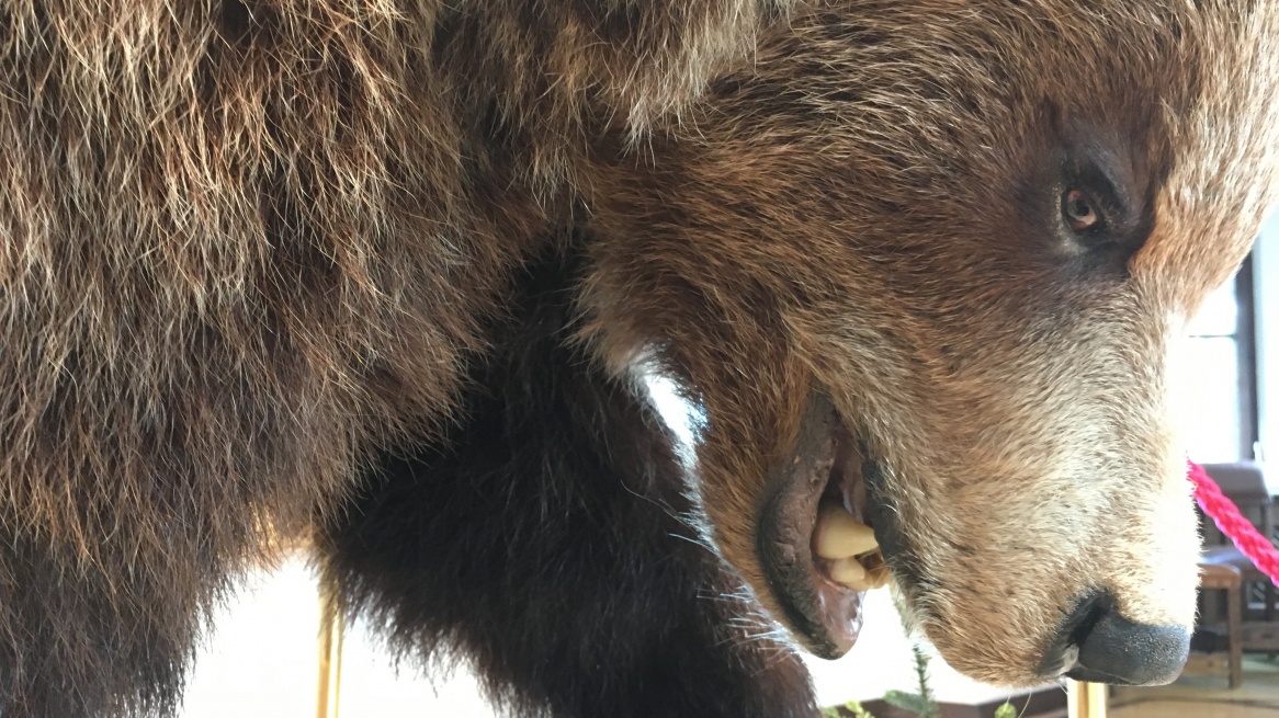 Es sind auch einige Präparate großer Tiere ausgestellt. Der Liebling der Besucher ist sicherlich ein zweijähriges Braunbärenexemplar, das man sogar streicheln kann.