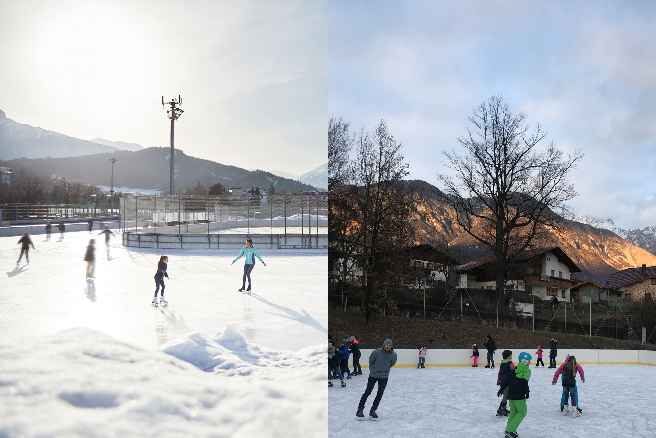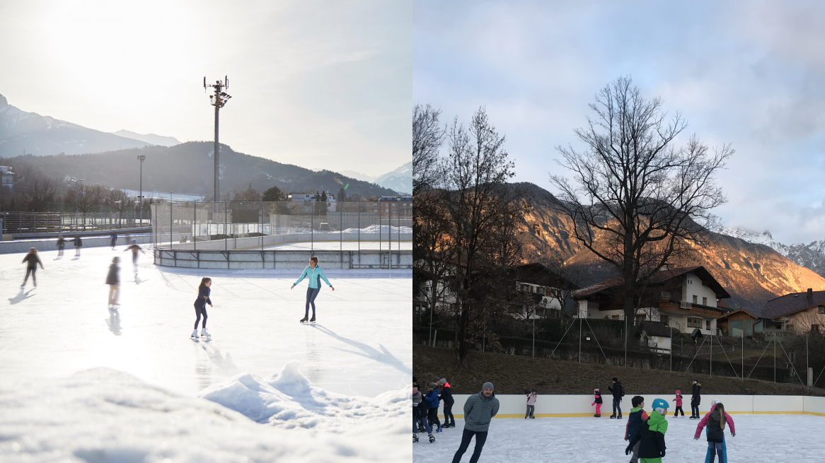 Eislaufen in der Olympiaworld Innsbruck (©Innsbruck Tourismus / Vorhofer) und im Römerpark Rum (©Lea Hajner)