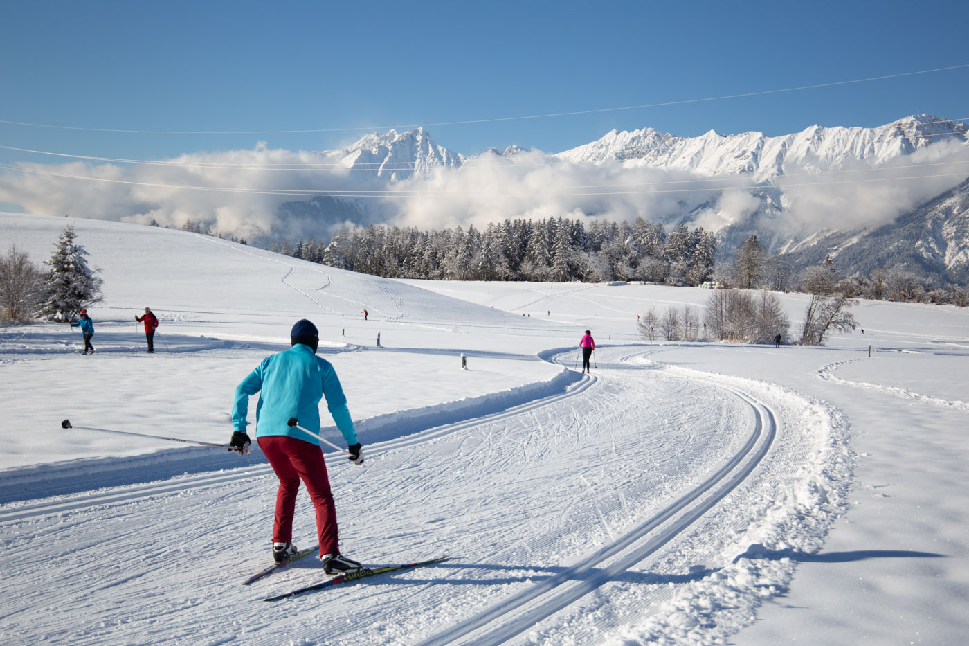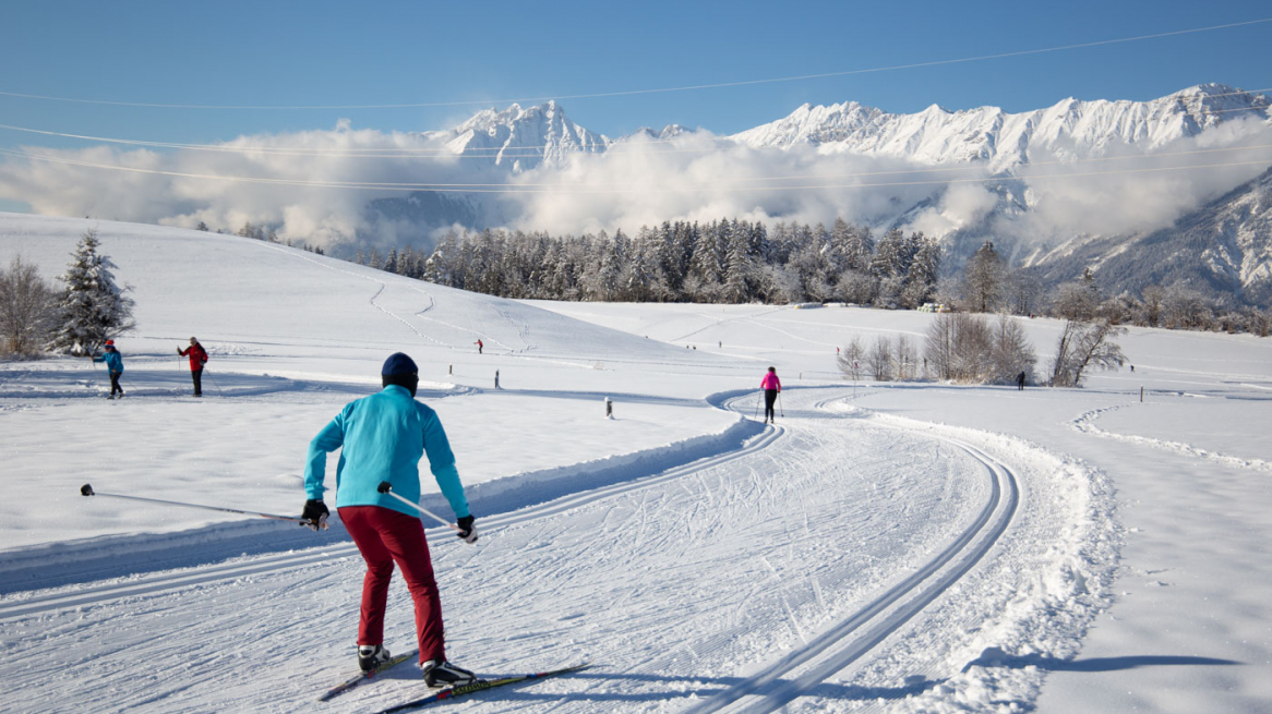 Die Loipe in Rinn teilt sich in zwei Loipen: die Panoramaloipe und die kürzere Golfloipe. Beide sind sowohl fürs klassische Langlaufen als auch für Skating geeignet. Insgesamt sind es ganze 22 Kilometer. Die Benützung ist hier außerdem kostenlos! Leihausrüstung (Schuhe, Ski, Stöcke) gibt es in Innsbruck zum Beispiel bei der Börse oder in Tulfes bei der Skischule Total oder Skischule Glungezer. In Rinn selbst gibt es keinen Verleih.