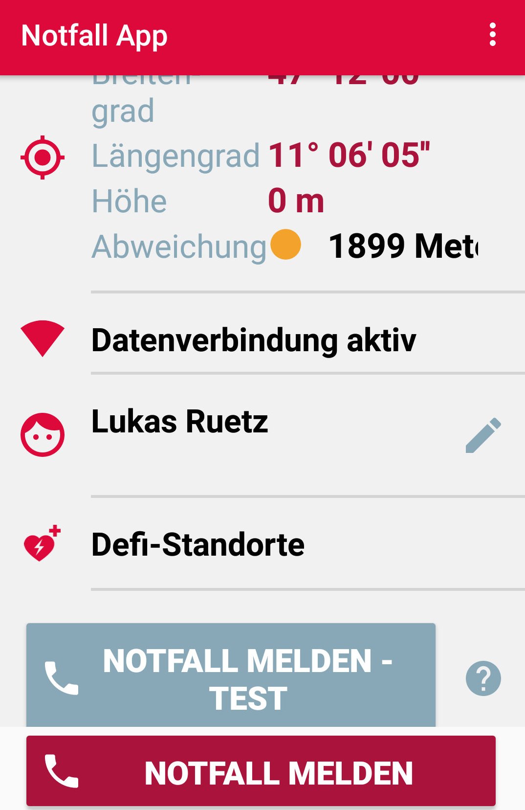 Zu beachten: Derzeit funktioniert das Weitergeben der Koordinaten nur in Tirol. Befindet man sich außerhalb von Tirol, wählt die App automatisch den Euro-Notruf 112 ohne Weitergabe der Koordinaten.