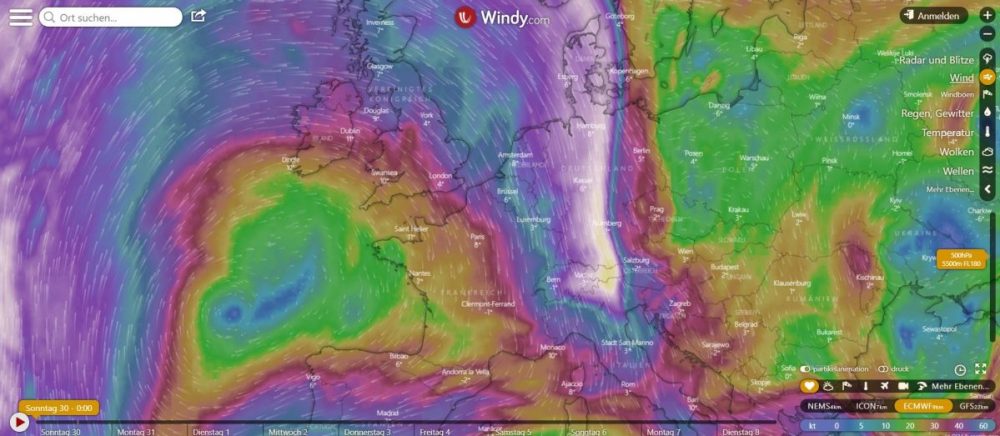 Windy.com und die zugehörige App (iOS / Android) sind echte Gustostückerln für alle die die Hintergründe des Wetters ein wenig interessiert. Man kann sich dort durch verschiedene Modelle klicken und Wind und Temperatur auf verschiedenen Höhenniveaus anzeigen lassen. Das so genannte „Partikeltracking“ ist dort bereits sehr gut umgesetzt – eine neue Art Windstärke und Windrichtung auf Wetterkarten sehr anschaulich darzustellen. Immer wieder interessant, was in der Atmosphäre so abgeht während wir im Tal kaum was spüren! Tipp: Immer das ECMWF-Modell verwenden und rechts mit dem Höhen-Schieber spielen.