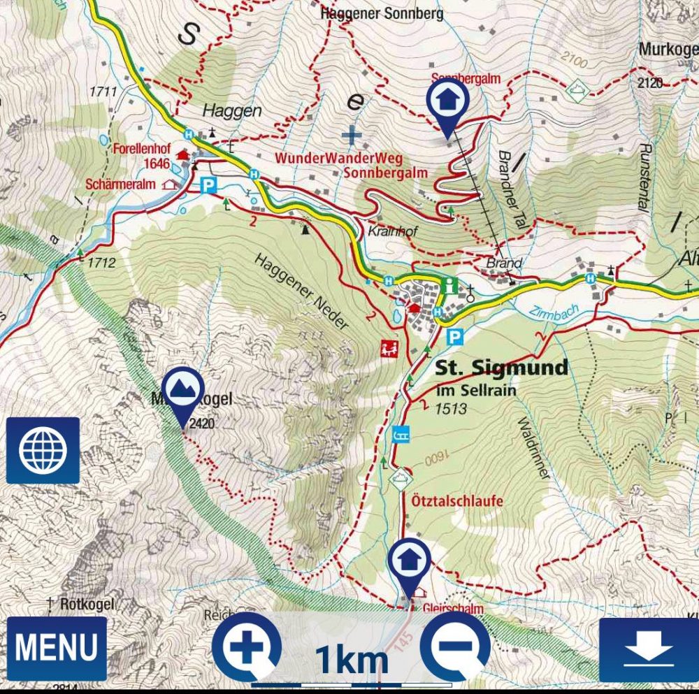 Meiner Meinung nach die beste Karten-App für jegliche Aktivitäten im Freien. Man findet eine Vielzahl an vorinstallierten kostenfreien Karten. Zum Wandern empfehle ich die Kompass-Karten. Meiner Meinung nach das Optimum aus Genauigkeit, Reduziertheit und leichter Lesbarkeit. Fast alle gekennzeichneten Wanderwege und -steige Österreichs sind dort vermerkt. Übrigens auch für den PC verfügbar unter http://www.kompass.de/touren-und-regionen/wanderkarte/