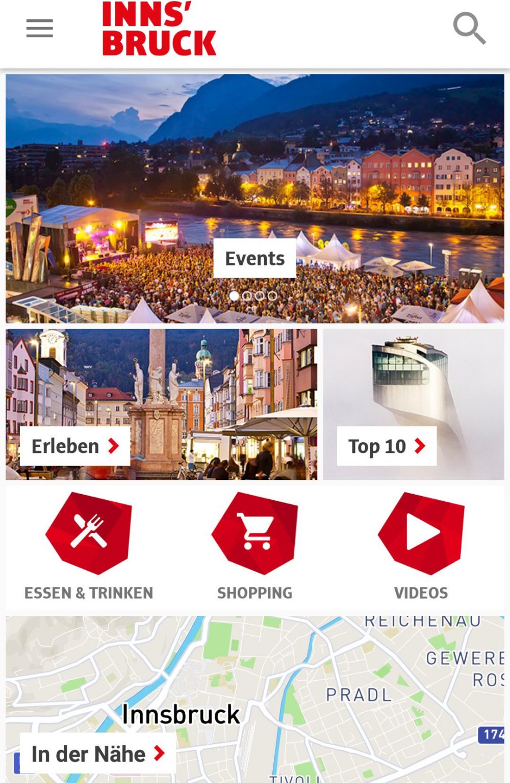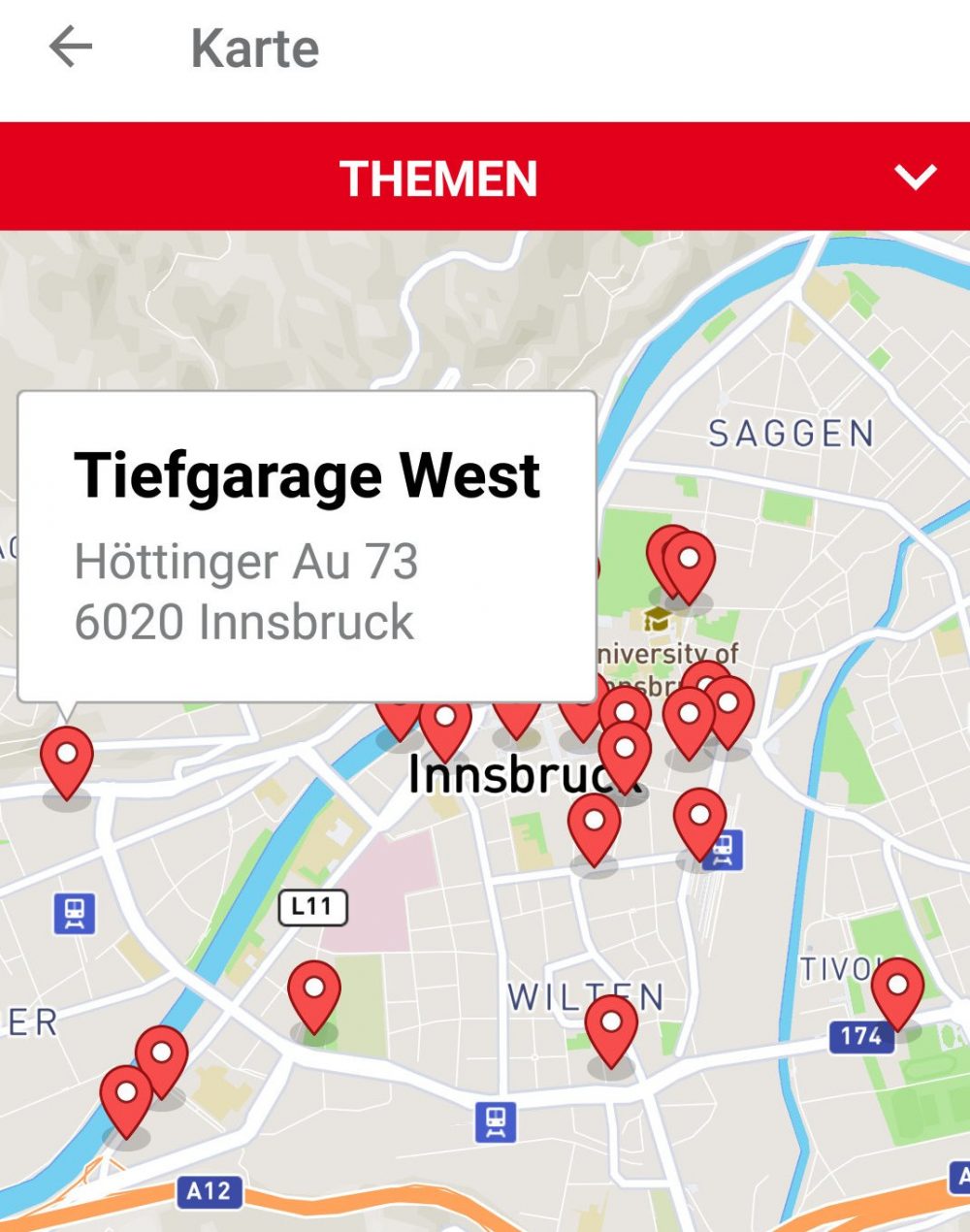 Die Innsbruck App ist die #1 Anlaufstelle wenn man nach geographisch verorteten POIs sucht. Also für Parkareale, Restaurants oder Sehenswürdigkeiten. Vor allem im Stadtbereich eine wahre Bereicherung.