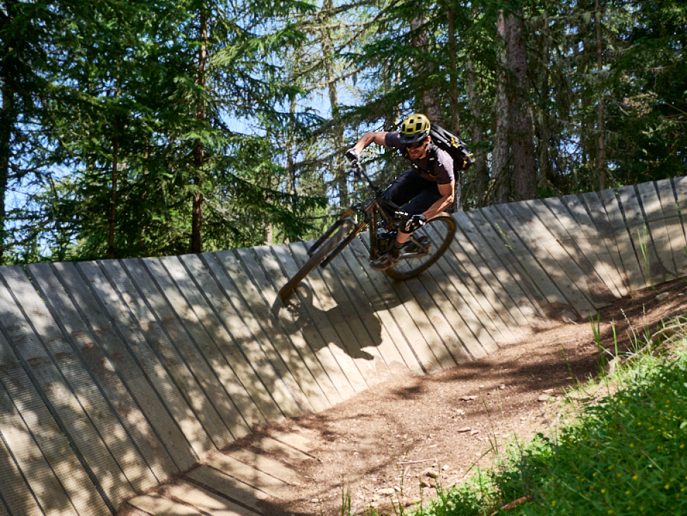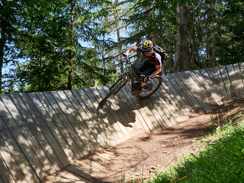 Mit Vollgas geht es im Bikepark Innsbruck hinein in den ‚Wild One‘, der unten dann in den ‚Rough One‘ mündet. Oben erwarten uns viele flowig geshapte Kurven, kleine Wellen zum Abheben und einige Northshore-Elemente. Beim Rough One geht es naturbelassener über Wurzeln und Stufen ziemlich zur Sache, genau dieser Mix bedeutet für uns ultimativen Spaß. Sooo Enduro! 😉