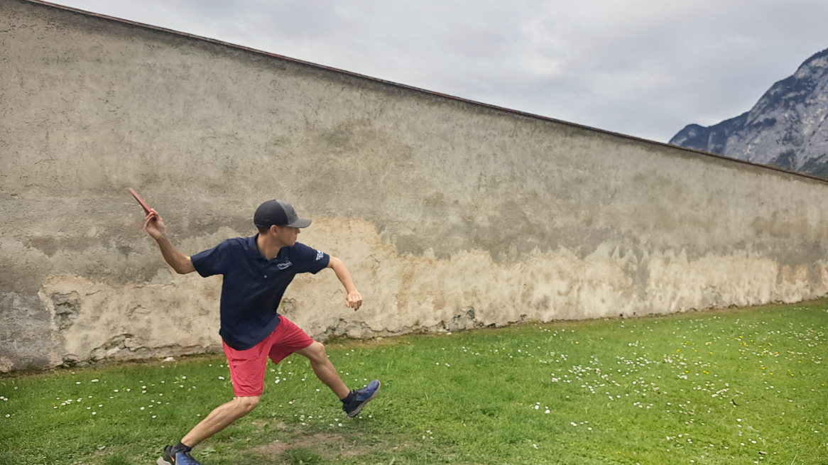 Mein Talent für Discgolf ist eher bescheiden. Während andere ihre Scheiben scheinbar mühelos weit fliegen ließen, war für mich jeder Wurf eine Herausforderung. Meine Scheibe flog nicht annähernd so weit wie die der anderen. Nicht nur die richtige Wurftechnik ist wichtig, sondern man muss auch die äußeren Umstände, wie zum Beispiel den Wind, berücksichtigen und seine Technik entsprechend anpassen. Zum Glück hatten wir einen tollen Trainer. Florian Lingenhel ist Staatsmeister und somit ein echter Profi. Durch seine guten Tipps und seine Geduld konnte ich mich verbessern und hatte noch mehr Spaß am Spiel. Florian war so nett, seine Expertise nicht nur mit mir, sondern auch mit euch zu teilen. Hier seine Tipps für einen gelungen Wurf: