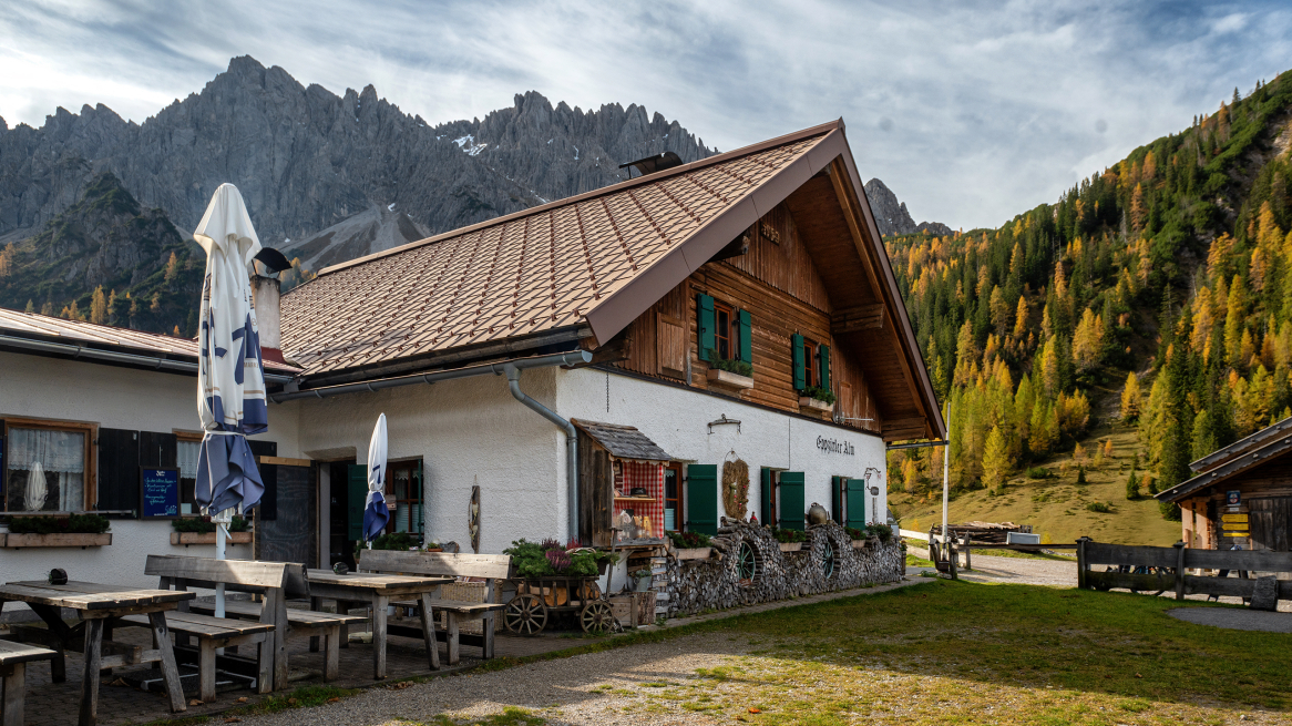 Die Wanderstrecke ist gut ausgeschildert und auch für weniger erfahrene Wanderer geeignet. Nach etwa 1,5 bis 2 Stunden erreicht man die auf 1.459 Metern gelegene Eppzirler Alm. Die Alm liegt eingebettet in einem wunderschönen Talkessel, umrahmt von steilen Berghängen und den beeindruckenden Gipfeln des Karwendels. Besonders im Herbst, wenn die Natur in kräftigen Farben erstrahlt und die klare Luft eine fast mystische Ruhe verbreitet, bietet dieser Ort eine atemberaubende Kulisse.