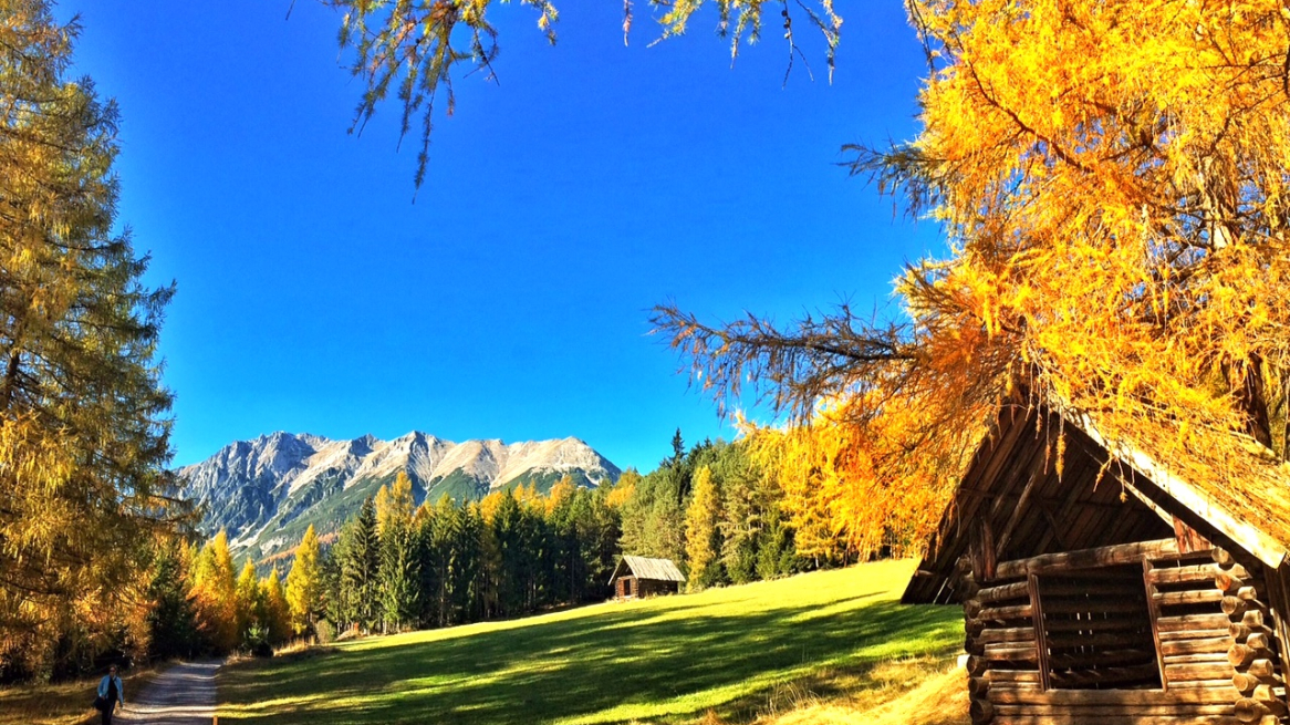 "Brennende Lärchen." Das Naturschauspiel findet Anfang November statt. Dann, wenn die Lärchen ihr luftiges grünes Sommergewand gegen ein strahlendes, goldenes Hochzeitsgewand tauschen. Es ist Jahr für Jahr ein seltenes Farbspektakel, das eine ganze Region mit einem zarten, goldenen Schleier umhüllt. Ein Spaziergang am Mieminger Plateau durch die herbstlichen Lärchenwälder gehört mit Sicherheit zu den eindrucksvollsten Erlebnissen in freier Natur.