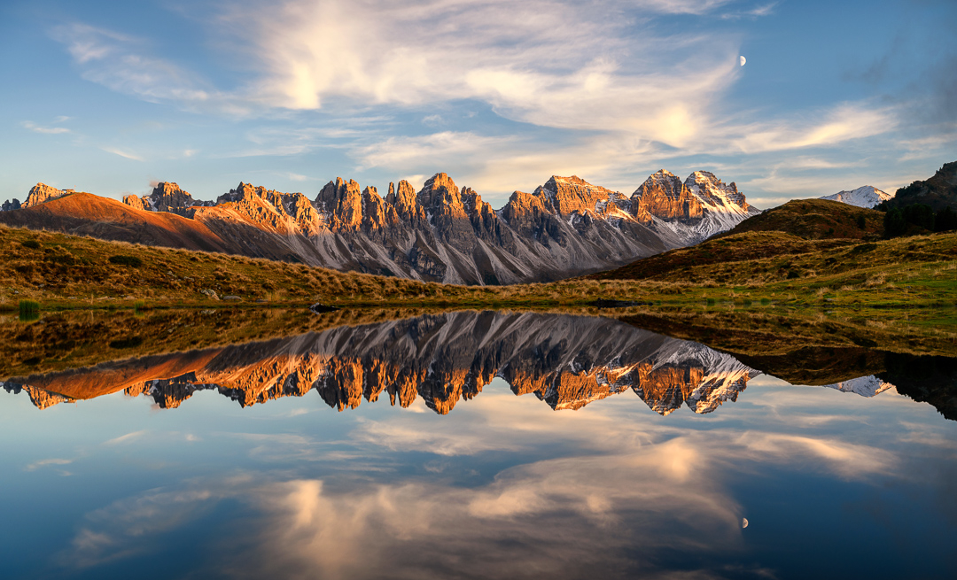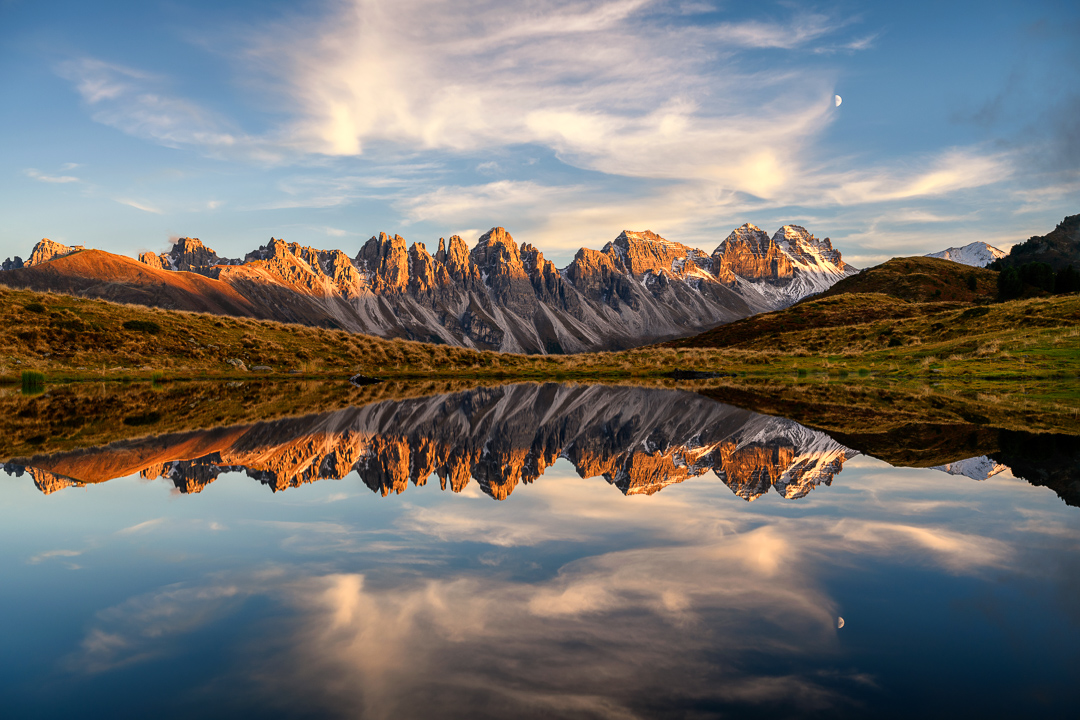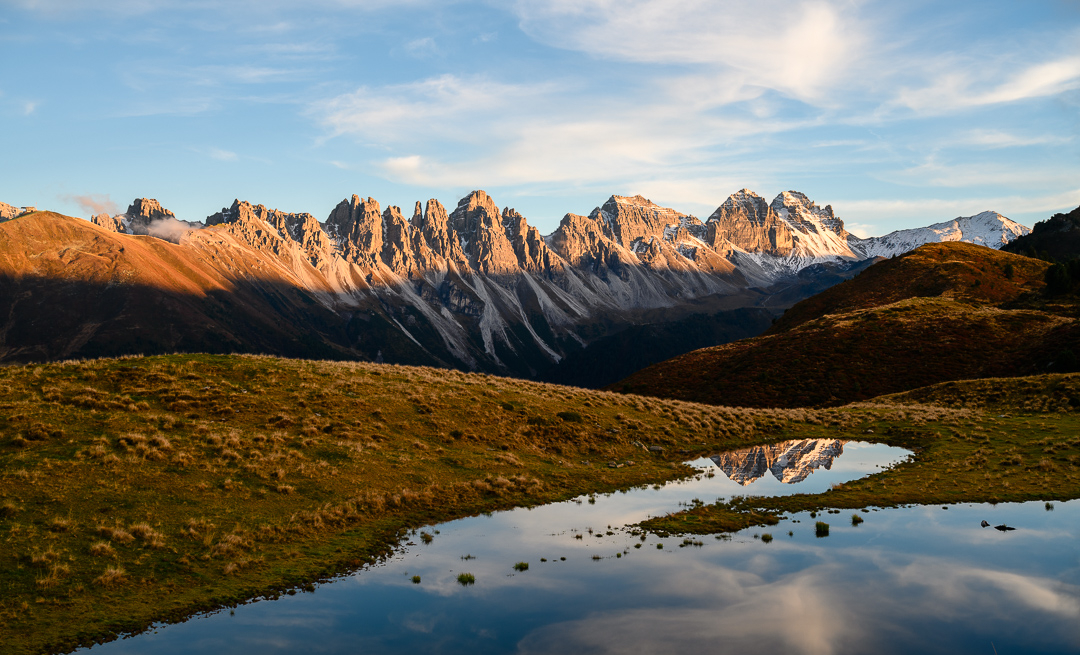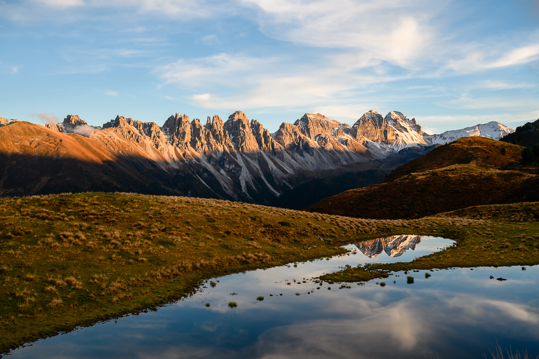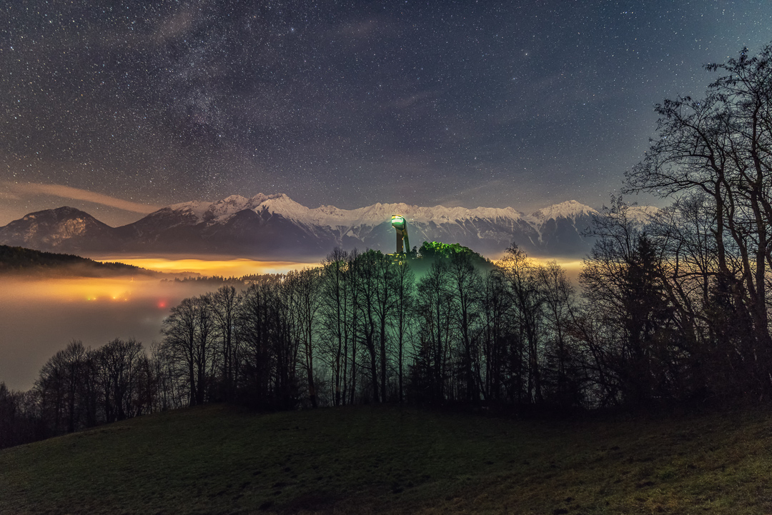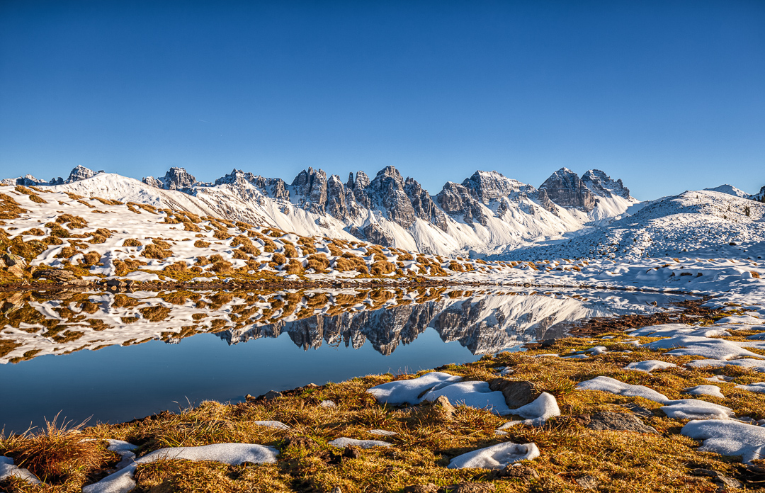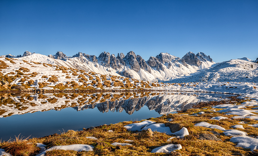 Im Herbst zeigen sich auch die Seen rund um Innsbruck von ihrer schönsten Seite. Der Salfeinsee in der Nähe der Stadt ist zu dieser Jahreszeit ein echter Fotohotspot. Die Kalkkögel spiegeln sich perfekt im ruhigen Wasser und schaffen eine friedliche, fast magische Atmosphäre. Besonders im Spätherbst, wenn der erste Schnee fällt, wirkt der See wie aus einem Bilderbuch eine harmonische Verbindung von Herbst- und Winterstimmung. Bei der richtigen Wetterlage bildet sich zudem oft Nebel im Tal, der die Landschaft in geheimnisvolles Licht taucht und den Ort noch beeindruckender erscheinen lässt.