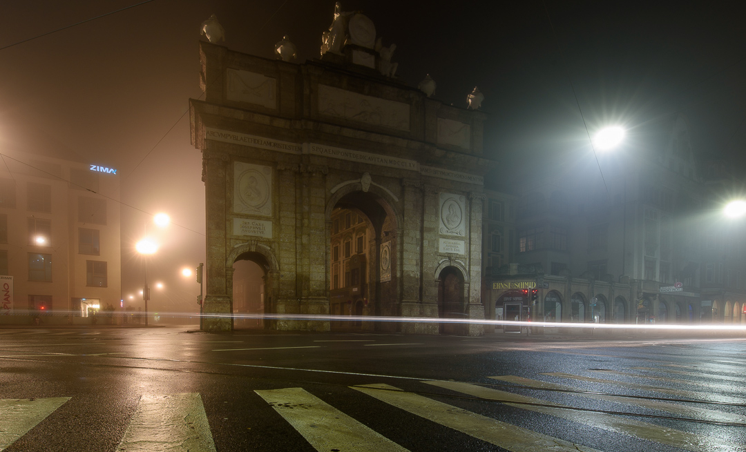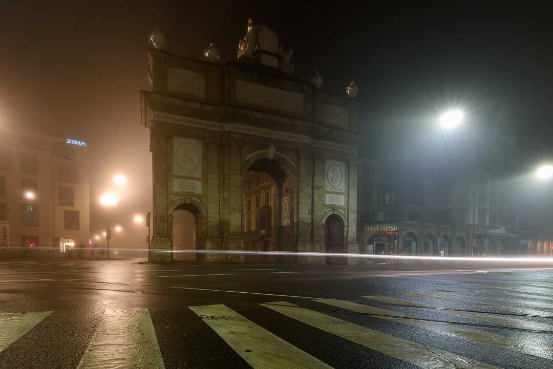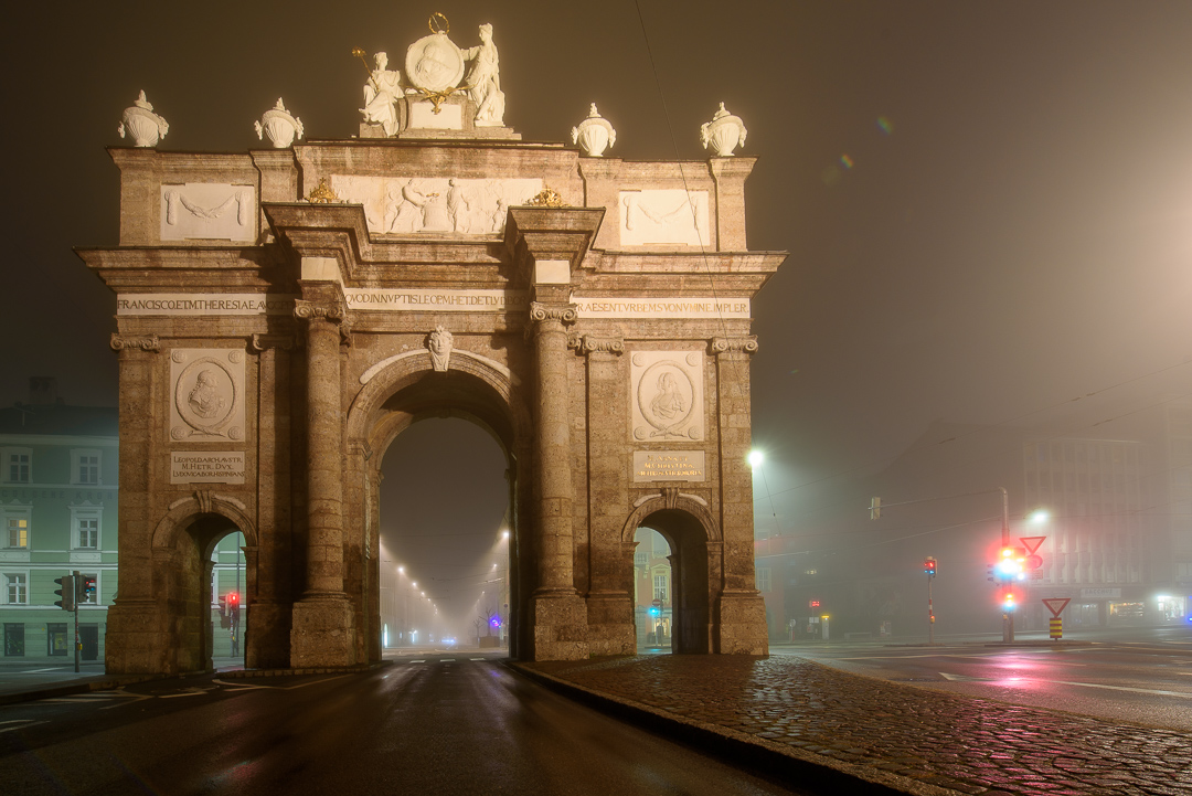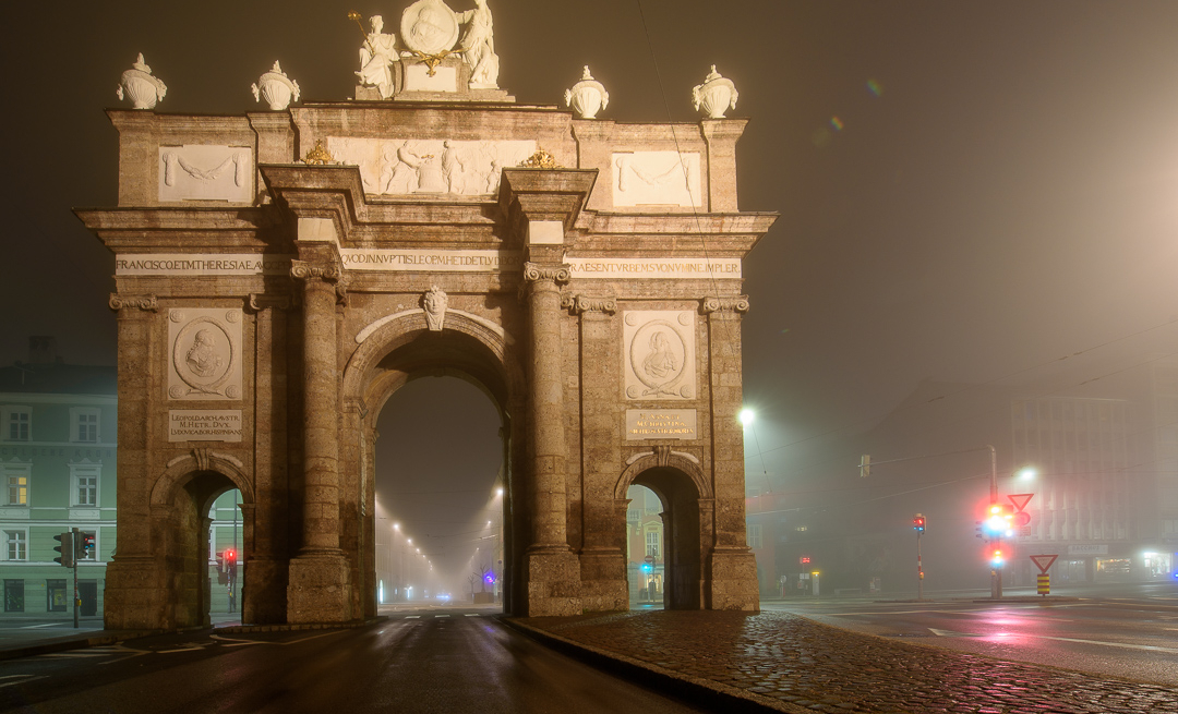 Die Triumphpforte im Nebel