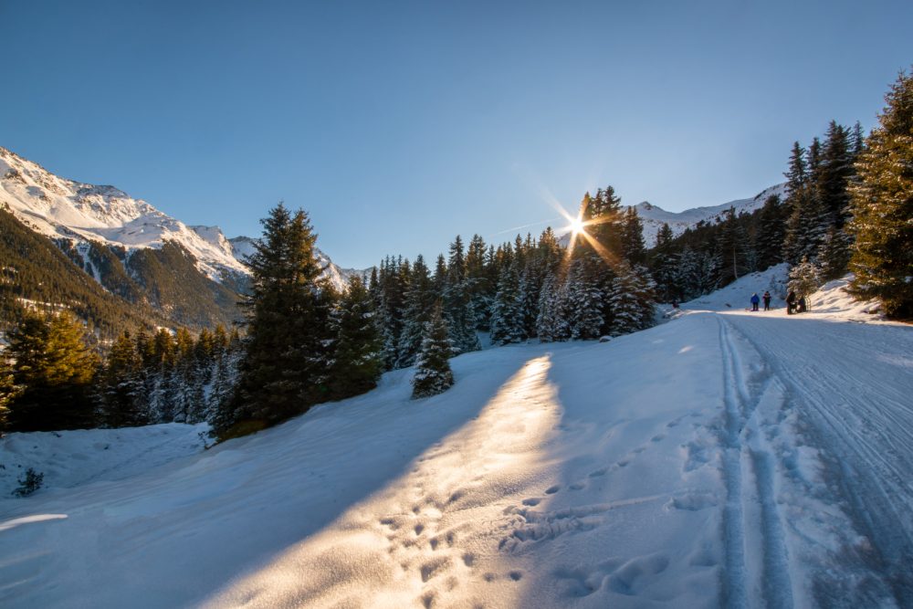 Ausgangspunkt ist der Alpengasthof Praxmar. Dieser ist auch die Einkehrmöglichkeit bei unserem Ausflug. Die Kogelalm, unser Ziel, ist nicht bewirtschaftet. Der Aufstieg erfolgt auf der Rodelbahn, ist bis in den Nachmittag sehr sonnig und ab dem Frühjahr auch ganztägig sonnig. Leicht ansteigend, aber nie wirklich anstrengend, geht es in Kehren durch den Wald hinauf. Etwas vorsichtig muss man in den Kurven sein, da man jederzeit mit Rodlern rechnen muss. Generell ist auf der Rodelbahn aber nicht so viel los wie auf der anderen Talseite, auf dem Weg zur bekannten Juifenalm.