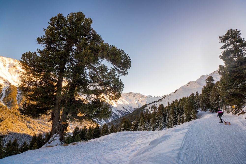 Eine wunderschöne Zirbe neben der Rodelbahn