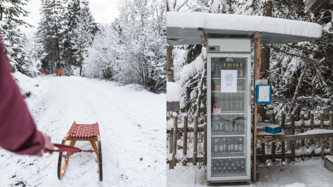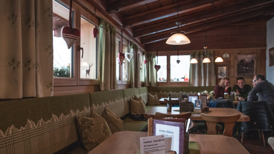 Die Rumer Alm ist das ganze Jahr über ein beliebtes Wanderziel und selbst wenn die Alm gerade geschlossen hat, kann man hier im Selbstbedienungskühlschrank Elektrolyte auftanken und den Mannerschnitten-Pegel zurechtrücken. Gemütlicher ist es natürlich in der kleinen Stube. Im Winter hat die Hütte täglich von 9:00 bis 17:00 Uhr geöffnet, Mittwoch ist Ruhetag. Bei Rodelbetrieb ist auch am Abend geöffnet (telefonisch erfragen unter +43 664 4276159).