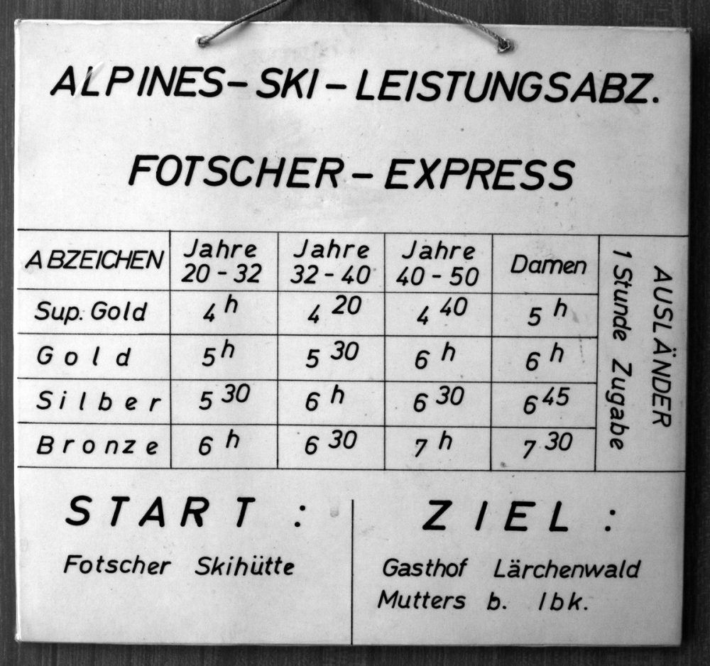 Jahr für Jahr im März trafen sich die damals noch relativ wenigen Tourenbegeisterten aus dem In- und Ausland im Fotschertal um die Strecke Skihütte – Schaflegerkogel – Kemater Alm – Hoadl – Axamer Lizum – Birgitzköpfl – Mutters zum Gasthaus Lärchenwald hinter sich zu bringen. Die Strecke beinhaltete über 1.900 Aufstiegshöhenmeter, was die schnellsten Athleten in vier Stunden bewältigten. Wohlgemerkt mit über zwei Meter langen Holzskiern, einer filigranen Bindung, Seehund-Spannfellen und Wollbekleidung!