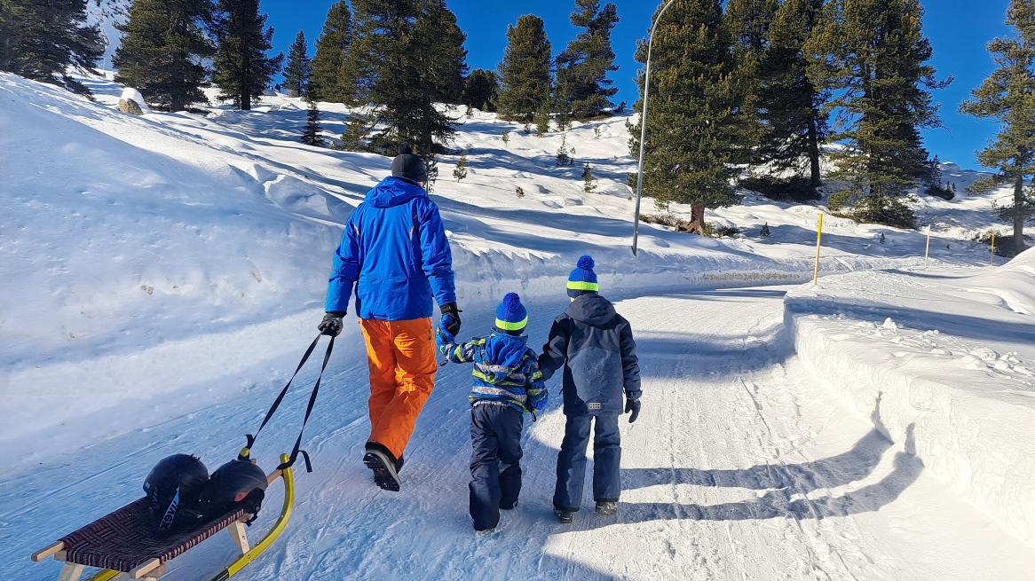 Nach drei Jahren Bauzeit ist die mit 2.127 Metern Seehöhe höchstgelegene Rodelbahn Tirols fertig. Schneesicherheit ist garantiert. „Wenn wir keinen Schnee haben, hat ihn keiner“, erklärt mir Roland Schwarz vom Tourismusverband mit einem Schmunzeln. Mit einer Länge von 1.330 Metern und 14 Kehren ist die Rodelbahn für Hobbyrodler absolut perfekt. Aber auch Profirodler finden hier optimale Bedingungen vor. Aufstieg und Abfahrt sind getrennt – was ich als unfassbar angenehm empfinde. Man geht circa 1,3 Kilometer bergauf. Das schaffen auch kleine Wanderfüße gut. Wer möchte, kann sich nach dem Aufstiegt im Graf-Ferdinand-Haus aufwärmen oder sich gleich ins Vergnügen stürzen.