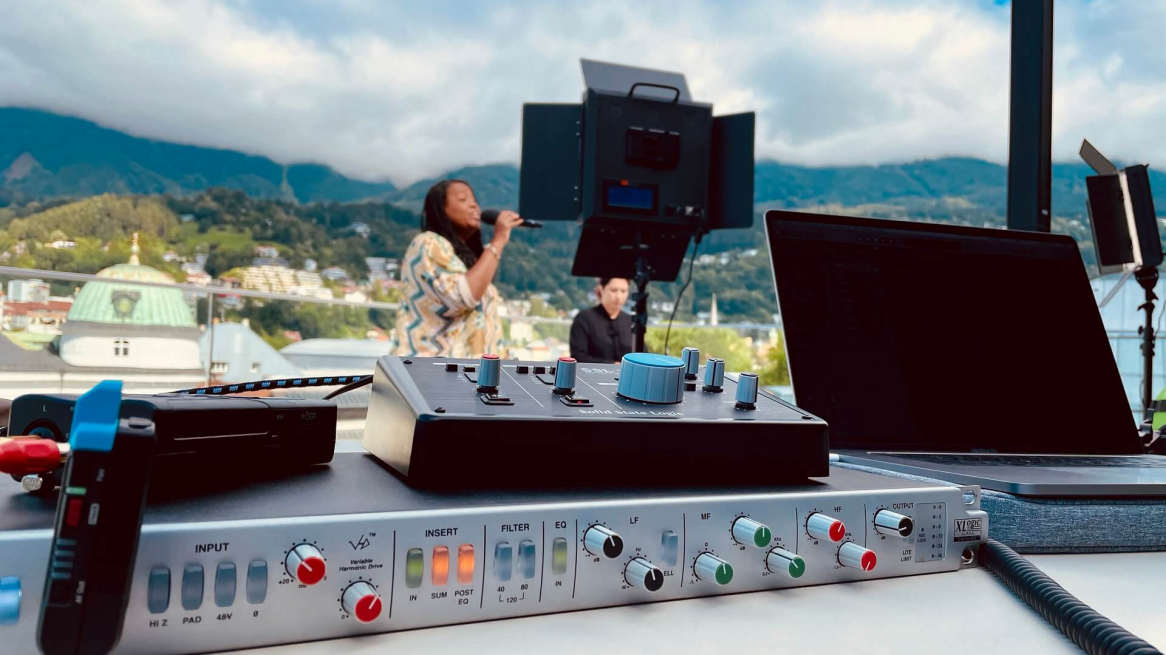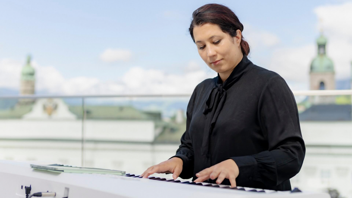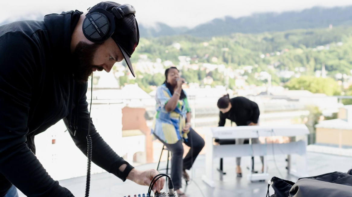 Just like most of the whole globe, events and live performances here in Innsbruck have been locked-up for what seems like a life-time and are itching to get back to business. Innsbruck city is beginning to get back to normal with restrictions easing further. Clubs, bars and other venues for live music can unlock their doors and welcome in the general public. In celebration of this, we recorded Gail Anderson and her keys player Rita Goller on the roof terrace of Haus der Musik, in the centre of the city.