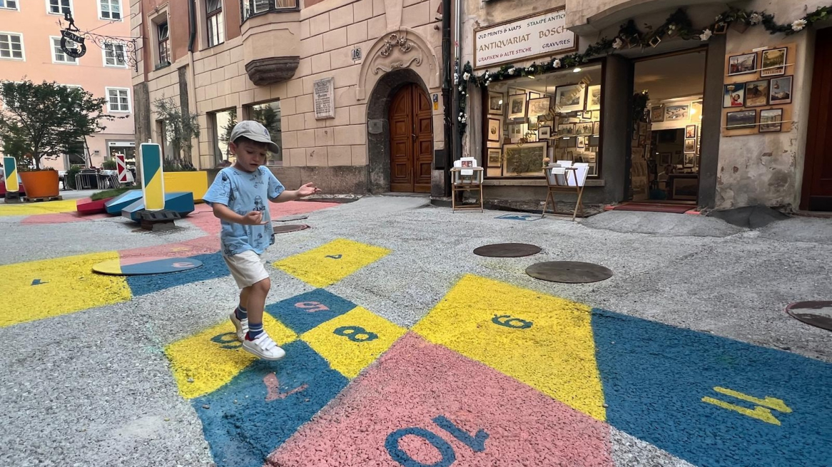 Innsbruck is really good at beauty! But where a building site is currently disrupting the charming idyll of the old town, creative solutions are needed. The old cobblestones in the old town are currently being replaced by new ones - with the usual, rather uncomfortable hustle and bustle. During this transitional phase, the pretty Kiebachgasse is focusing on colorful leisure activities with seating areas, green lawns and games in public spaces. I immediately took a picture or two of the temporary installation "Urban Blooms" for myself.