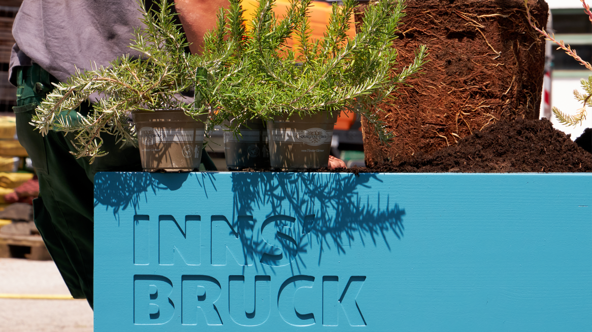 Urban Blooms makes the city a green place to linger. Seating furniture and small meadow areas bring nature into the pedestrian zone. The ground has been colorfully painted, including with outdoor games. Why? The old town is currently in a transitional phase and the alleyways are being repaved. The local businesses are sometimes getting creative and neatly arranging their summer sidewalk gardens between the construction site grates. In Kiebachgässlein, it is so beautiful that the slalom of tables makes it so easy to stroll and look around that you can actually sit down right away. Without further ado, a wild idea was born out of the illustrious confusion: What if you could even lie there, so shady and surrounded by greenery? Inspired by Leeuwarden in Friesland, where 1000 trees wander through the city on 100 days, thoughts turned to Innsbruck in mid-June. Just one month later, the first "city blossoms", realized by Innsbrucker Architekturschmiede Snøhetta with regional companies - otherwise it would not have been possible so spontaneously.