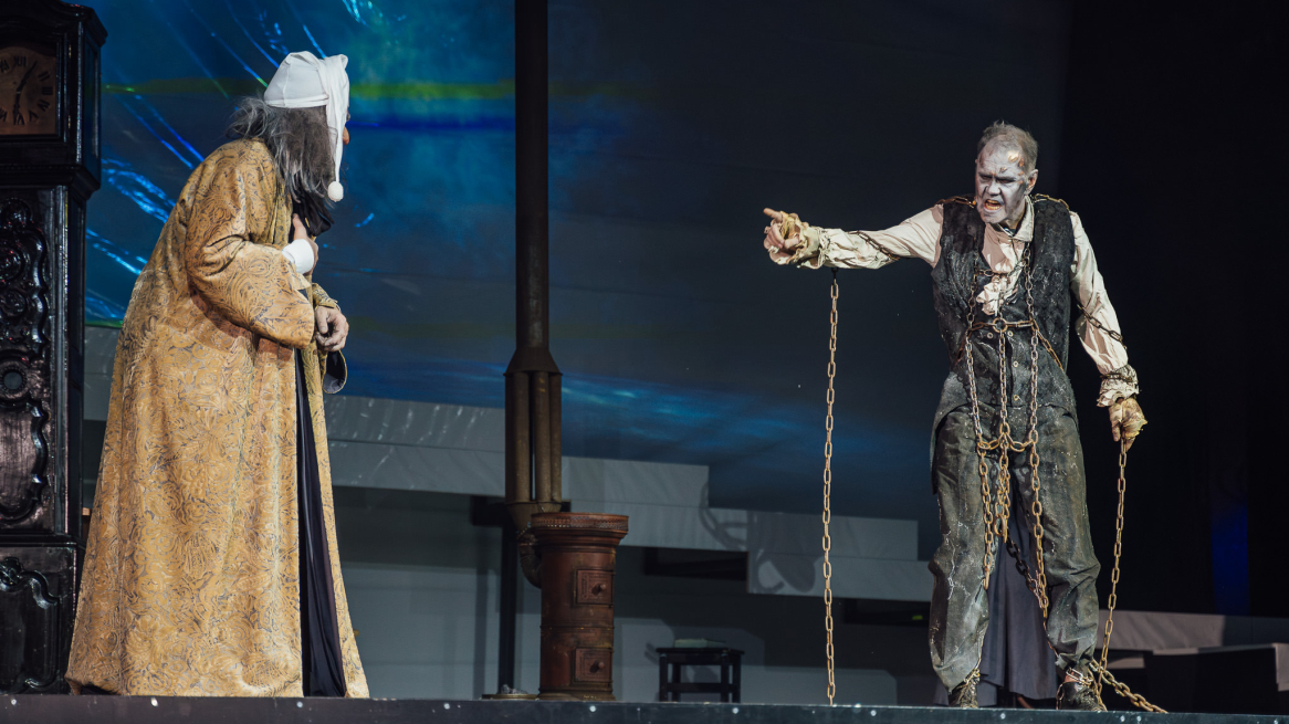 Frightening: Thomas Lackner as Marley, who appears to Scrooge as a ghost. Photo: Mathias Brabetz Photography