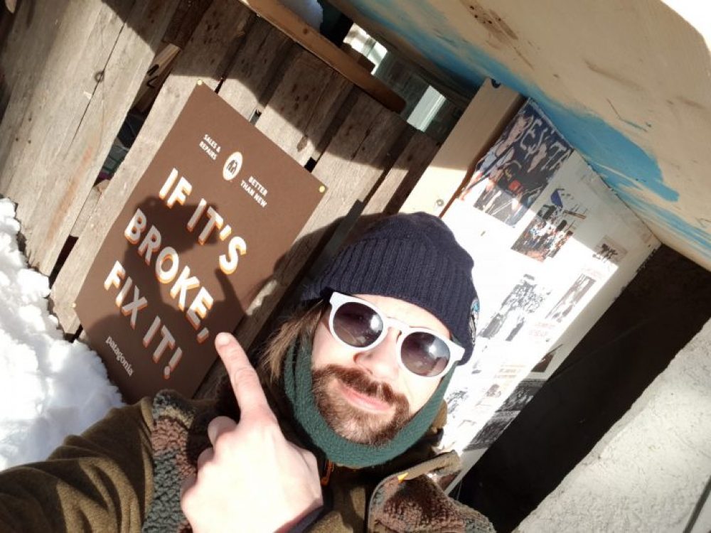 The new store manager Bertl at the Worn Wear event. Bertl used to work for Burton but couldn’t refuse this position as store manager in the new Patagonia store!
