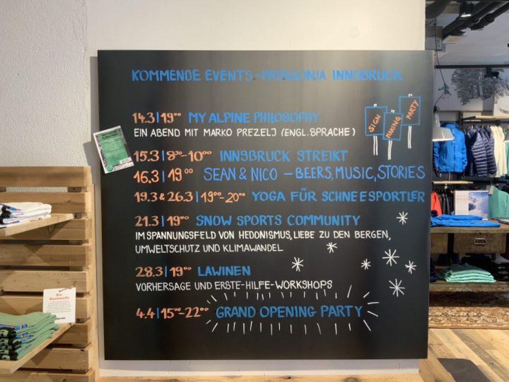 By opening a store in Innsbruck, Patagonia acknowledges its importance as an outdoor hotspot. The store has a space dedicated to events, film screenings and public talks. In the future it will become clearer which grassroots organizations it’s going to support. On the website I only find one grantee in Tirol so far, but I’m sure this number will grow once the store is up and running.