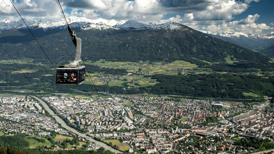 From Congress on the edge of the old town, the new cable car runs via the stations Löwenhaus and Alpenzoo to Hungerburg. It joins the old route shortly before the finish line.