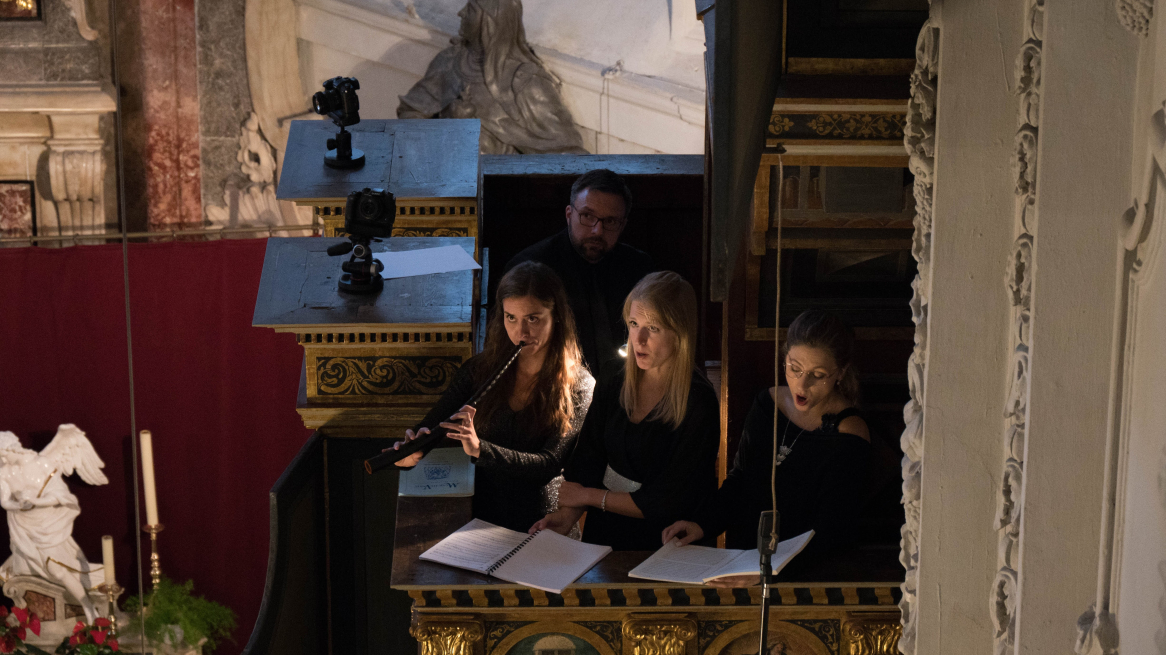 En los diversos proyectos musicales de Innsbrucker Hofmusik se explotan las posibilidades que ofrece el espacio sonoro de la iglesia y se buscan soluciones nuevas e inesperadas. Puedo decir por experiencia personal que, sentado en la iglesia para escuchar un concierto, uno tiene la sensación de verse envuelto por la música y a veces no entiende exactamente de dónde viene. Prefiero elegir un asiento un poco al fondo y, de vez en cuando, cerrar los ojos. Entonces toda la atención se centra en el sonido y uno tiene la sensación de estar inmerso en un flujo armonioso creado por voces e instrumentos musicales.