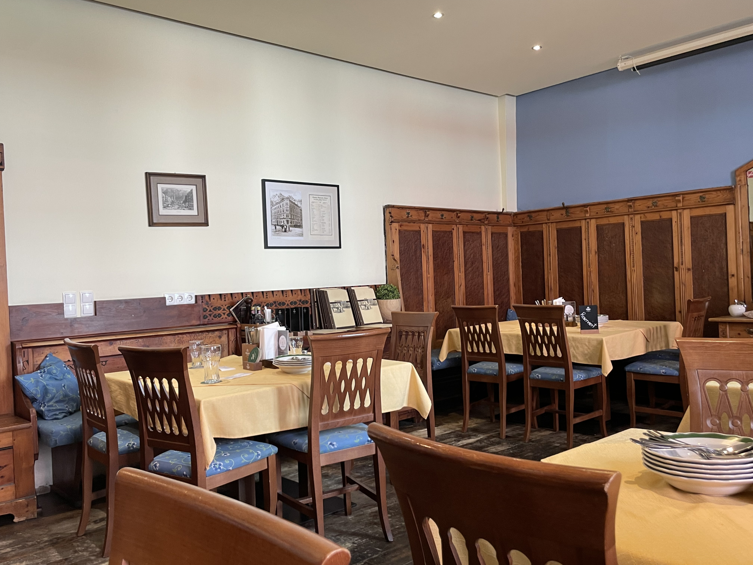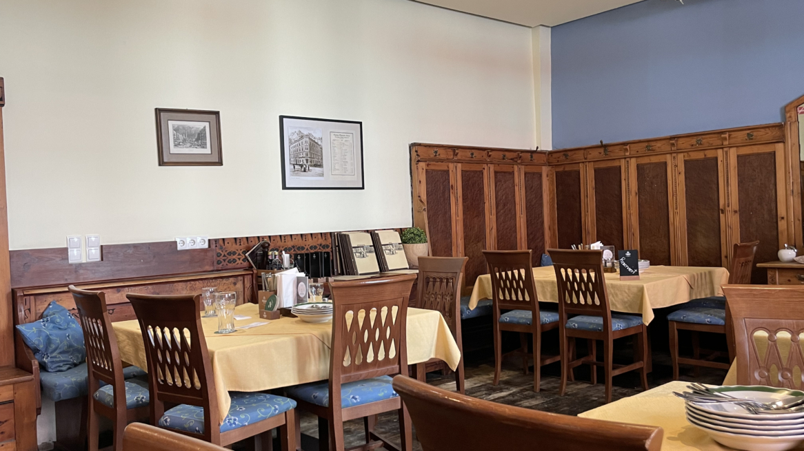 En el interior, el ambiente es auténticamente rústico: paredes con paneles de madera, decoración tradicional y un ambiente animado y acogedor que te hace sentir como en casa al instante. El menú celebra la comida austriaca en su máxima expresión: cerdo asado con chicharrones crujientes, Käsespätzle, Wiener Schnitzel, o un plato de esponjosos Kaiserschmarrn. Las especialidades de temporada mantienen la emoción, ya sean espárragos frescos en primavera o platos de caza en otoño.
