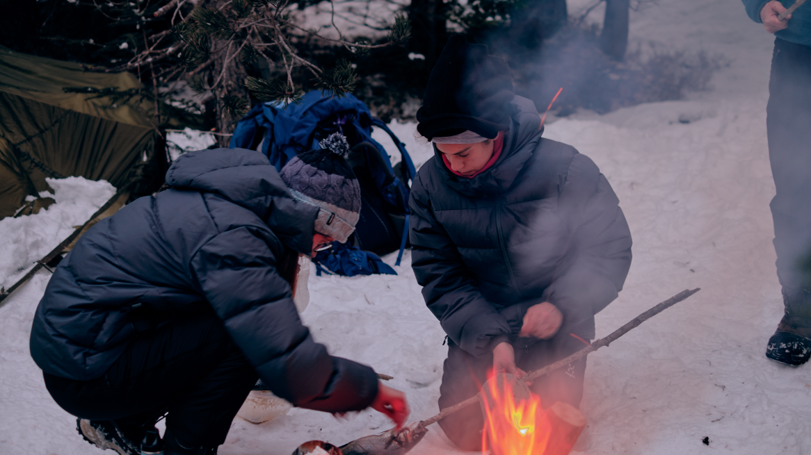 Entrenamiento de supervivencia de la ESA en los Pirineos. Están friendo pescado ahora mismo. Definitivamente no son vacaciones. © Trailhaven - S. Schraegle