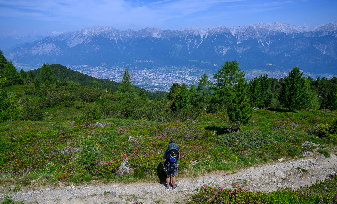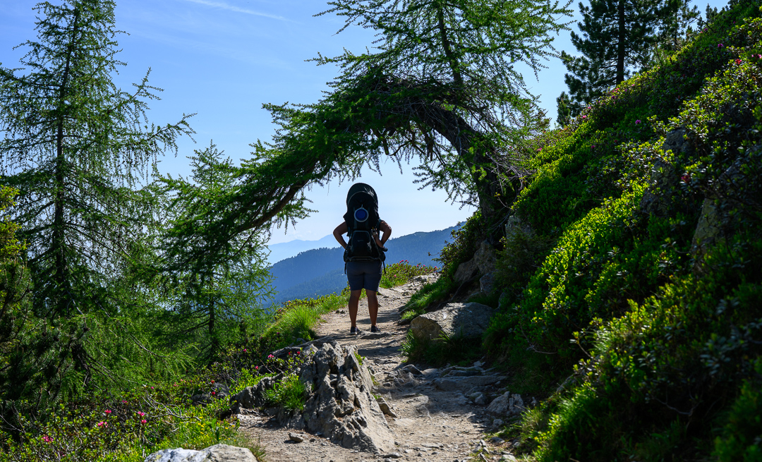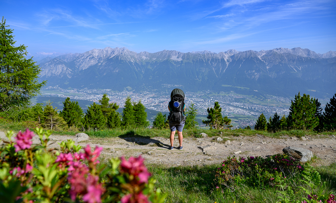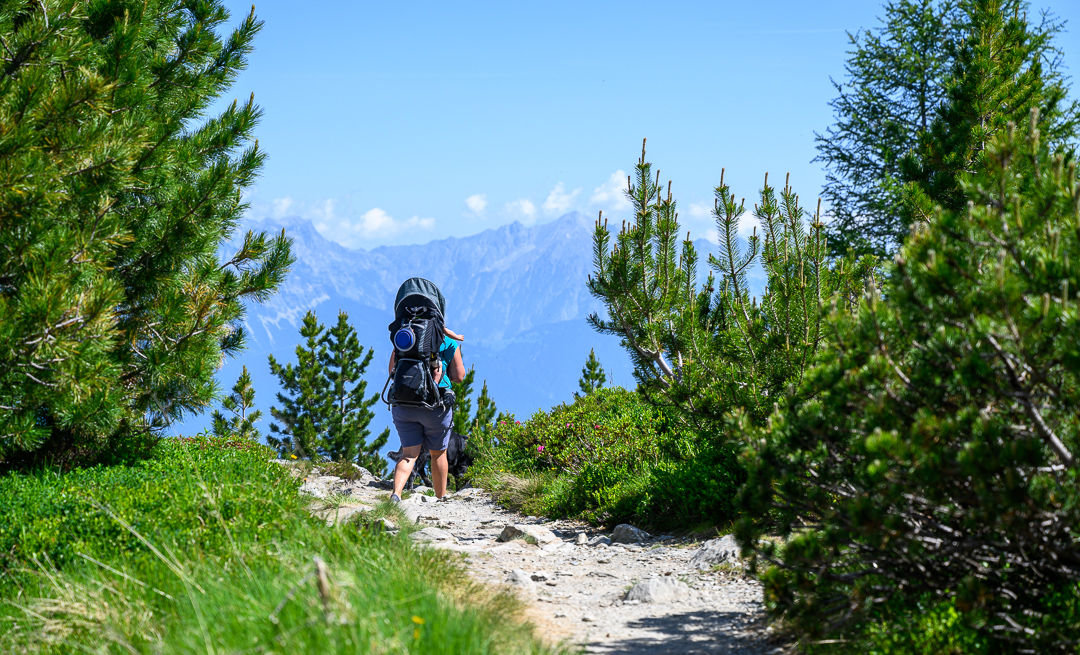El famoso sendero panorámico entre los montes Patscherkofel y Glungezer atraviesa uno de los mayores bosques suizos de pinos piñoneros de Europa: hablamos del legendario y muy visitado Zirbenweg. Además de los antiguos pinos piñoneros, ofrece un panorama impresionante por encima de los tejados de Innsbruck. El sendero discurre por un terreno relativamente llano entre los teleféricos de Patscherkofelbahn y Glungezerbahn, y es una auténtica atracción para los amantes de la naturaleza y el senderismo. También para familias con niños. Nosotros llevamos a nuestro pequeño en un fular a la espalda.