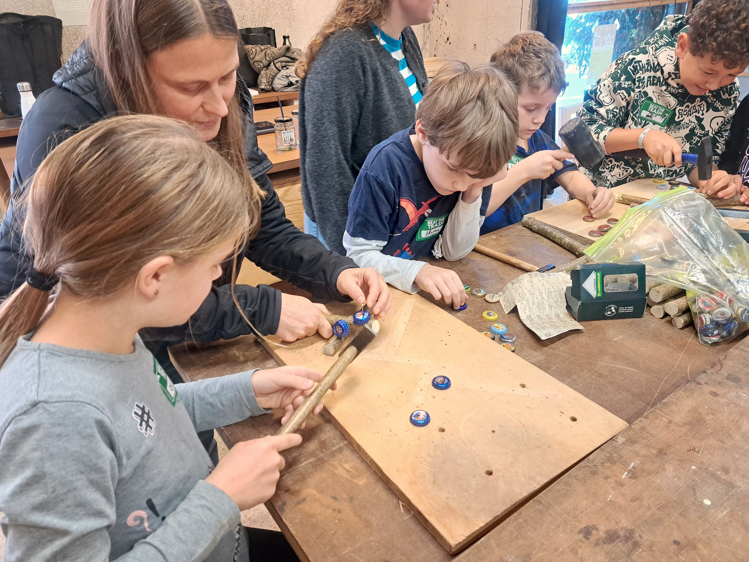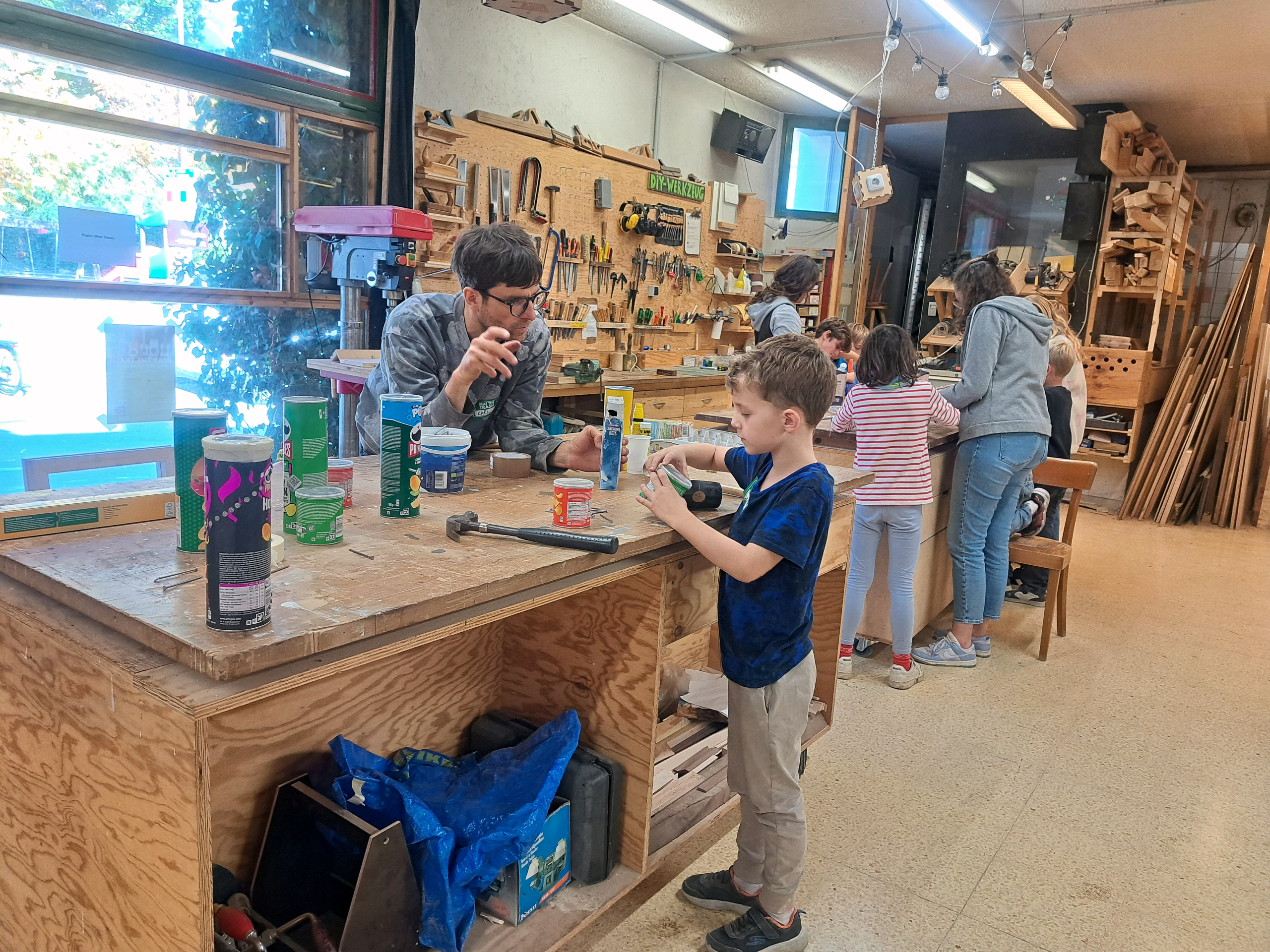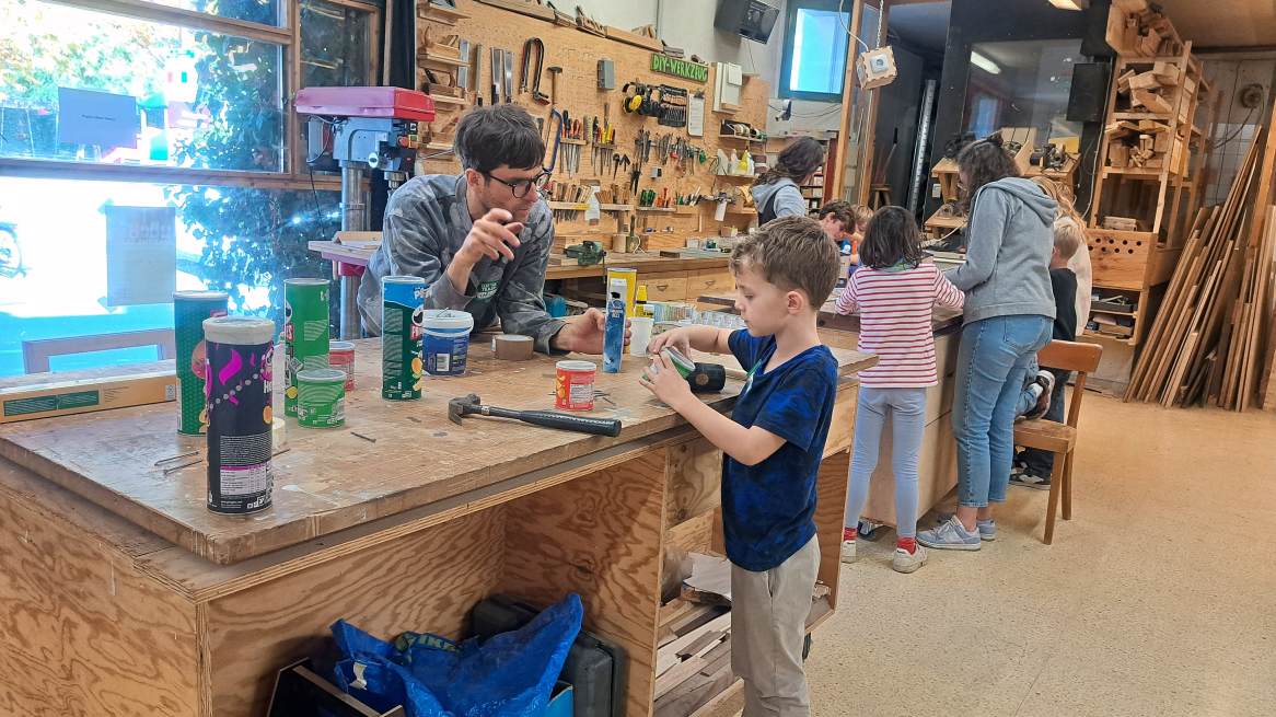 En resumen: ¡el taller fue estupendo! El lugar -el sofá del taller-, la buena organización y el simpático tallerista Selina Zwick convencieron. Y, por supuesto, los niños, que estaban entusiasmados. Empezamos con un pequeño juego de adivinanzas: ¿Cuánto tarda en pudrirse una Apfelbutzen (= el corazón de una manzana comida)? ¿Una caja de cartón? ¿En plástico? ¿O el vidrio? Rápidamente quedó claro que algunas cosas tardan una eternidad en desaparecer. Algunas cosas se pudren en unas semanas, otras en unos meses, pero ¿el plástico? Eso dura cientos de años. ¿Y el vidrio? Casi una eternidad. Momentos como éste son importantes: dejan claro por qué es importante la concienciación medioambiental. No quiero parecer patético, pero es simplemente cierto: los niños son nuestro futuro. Los valores y experiencias que les demos hoy conformarán lo que será importante para ellos mañana. Y talleres como éste demuestran que aprender también puede ser divertido.