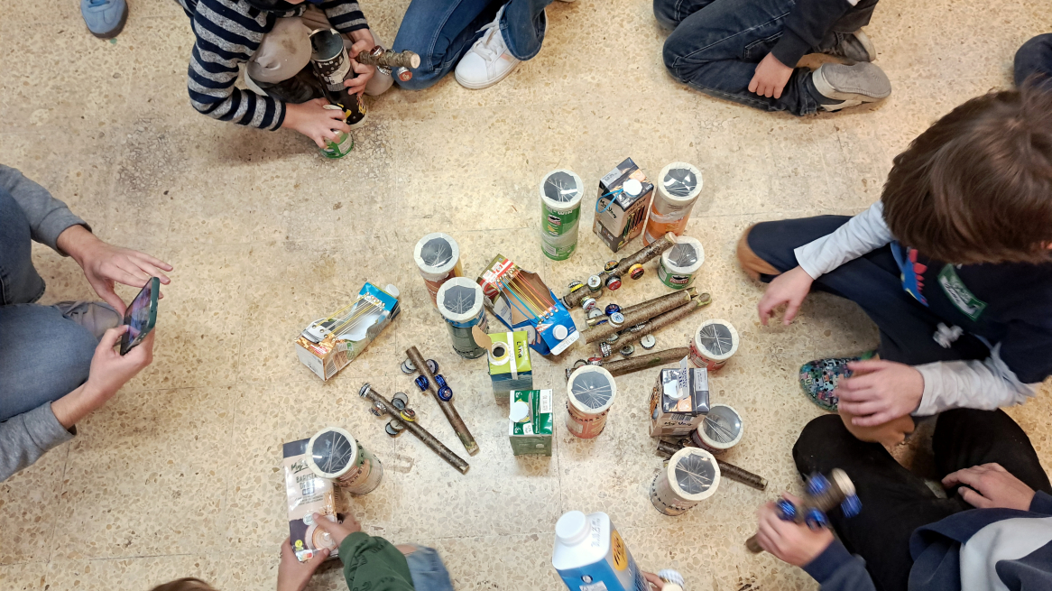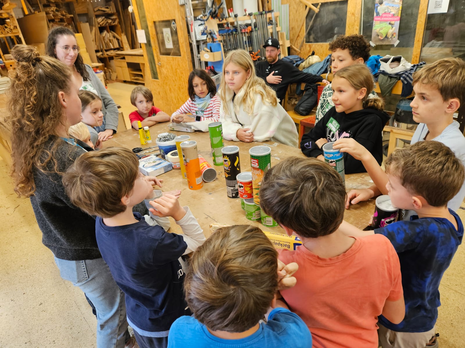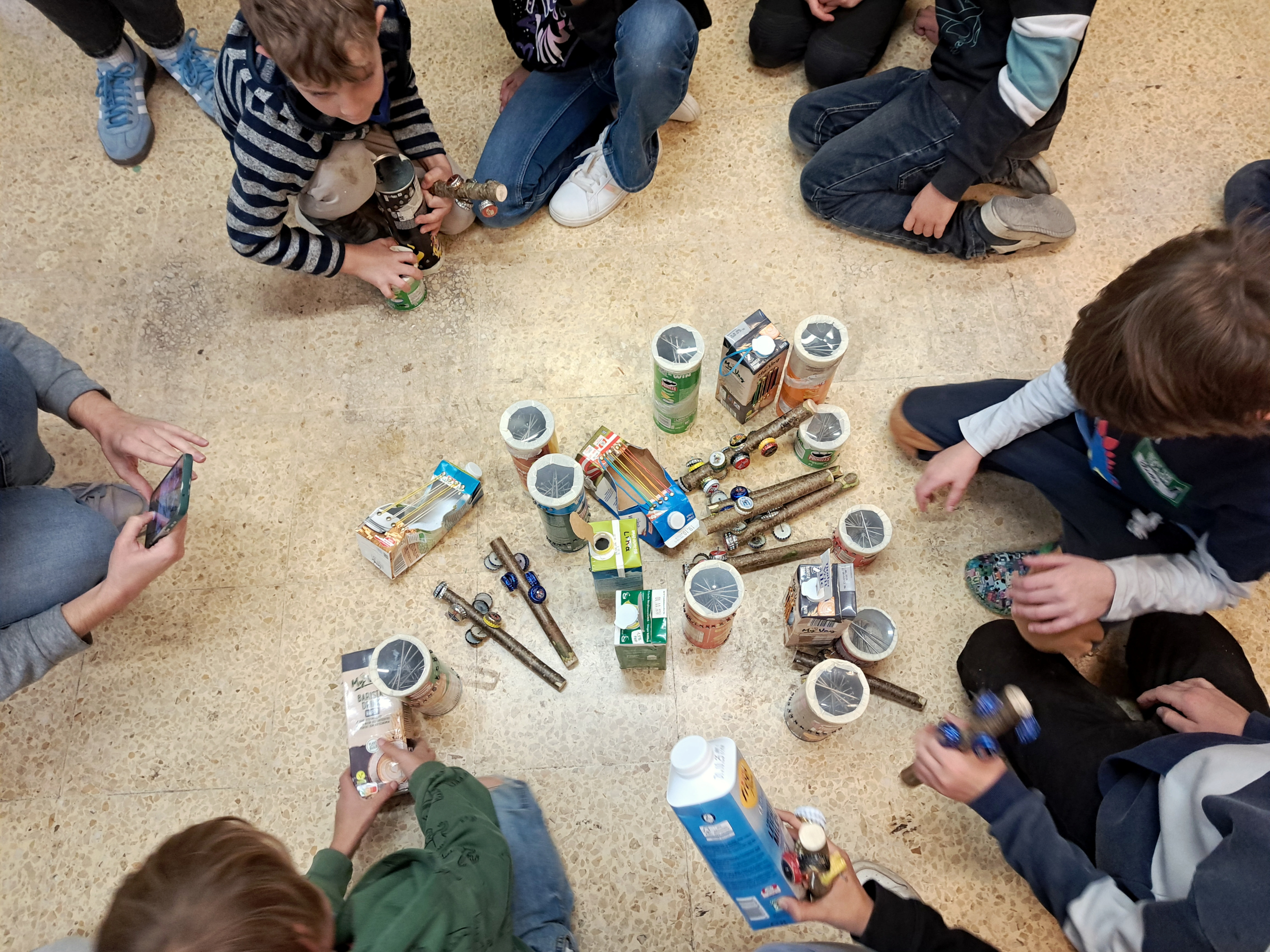 Tras la introducción, los niños se pusieron manos a la obra: Se hicieron guitarras con cartones de leche, tubos de lluvia con latas de Pringles y pequeñas campanas con tapones de corcho. La basura no siempre tiene que pudrirse: a veces se le puede dar nueva vida y convertirla en algo realmente genial. Los niños disfrutaron mucho. Como ya he dicho, esto se debe a la organización profesional de los estudiantes y, por supuesto, a Selina. Incluso mi hijo mayor, que era escéptico al principio, se entusiasmó al final.